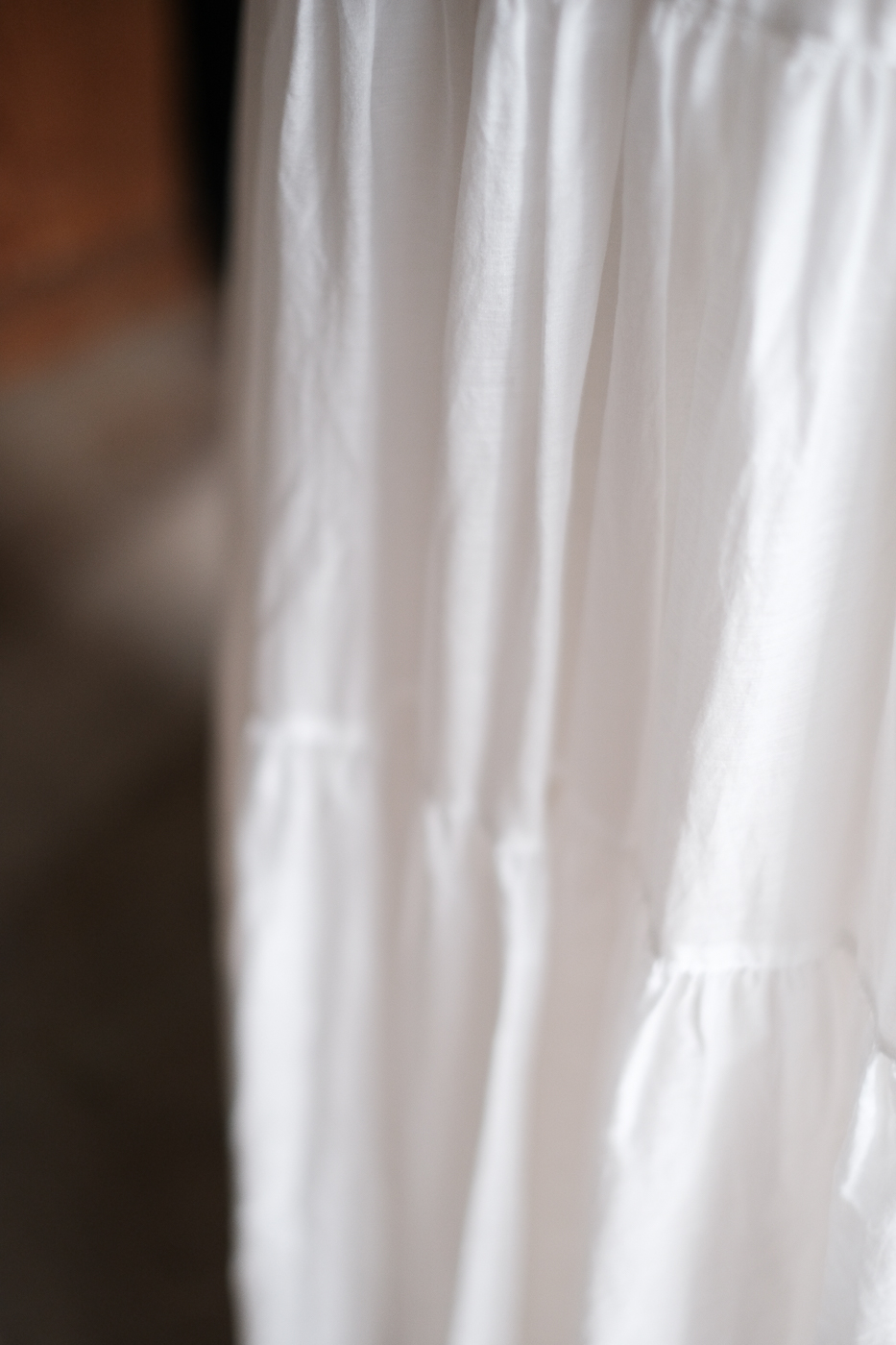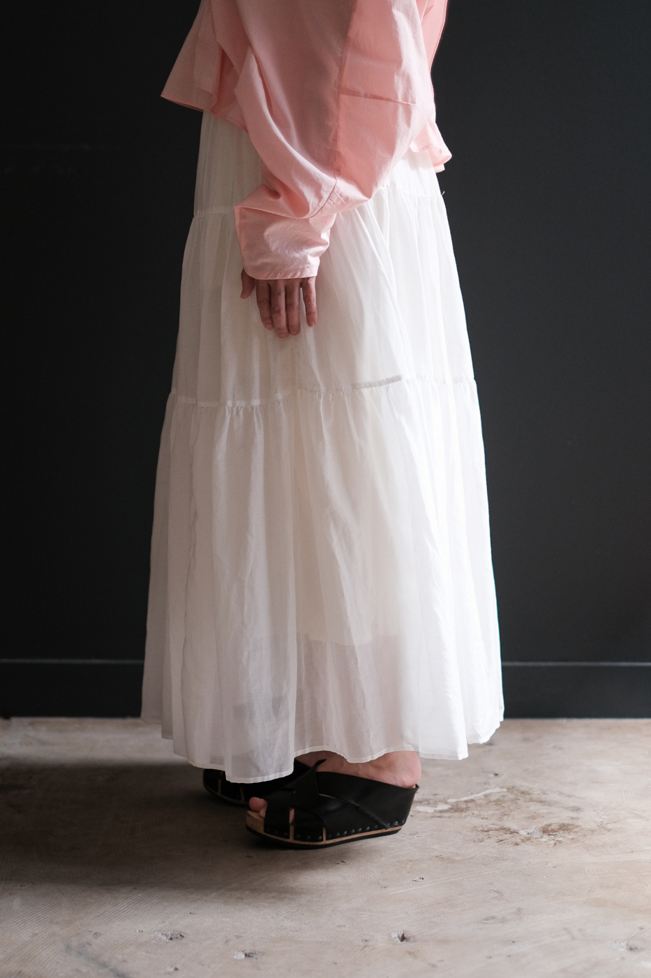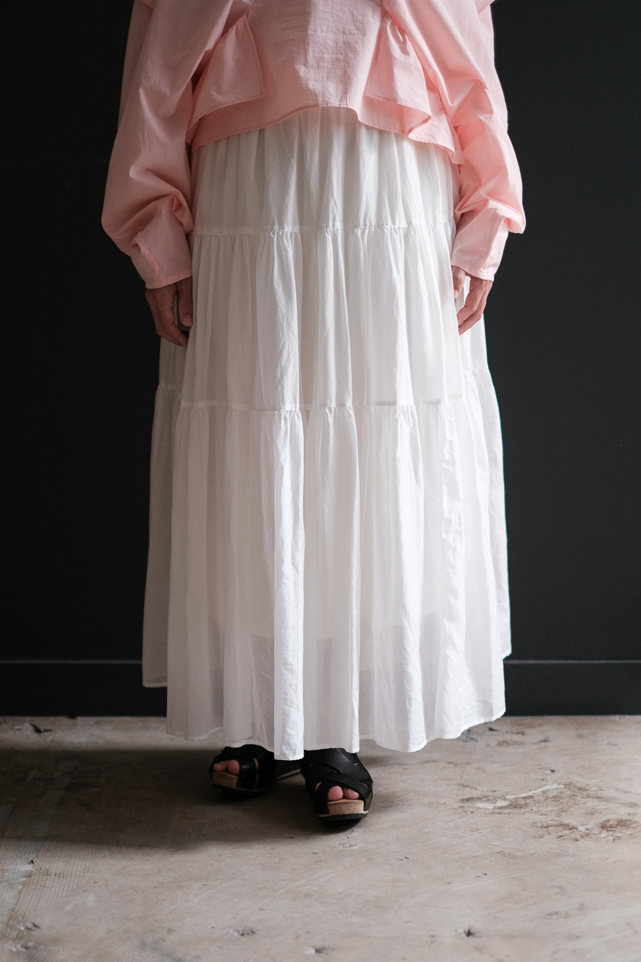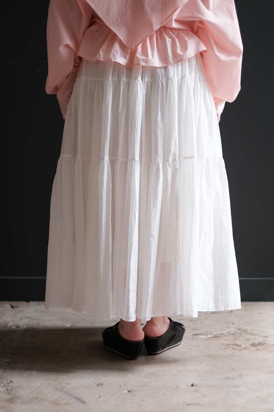 ギャザーを寄せ、動いた時に美しく見える生地の分量感を