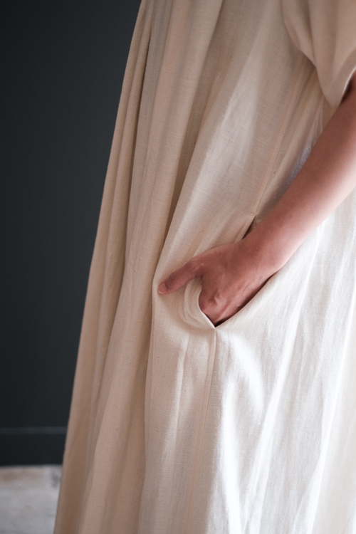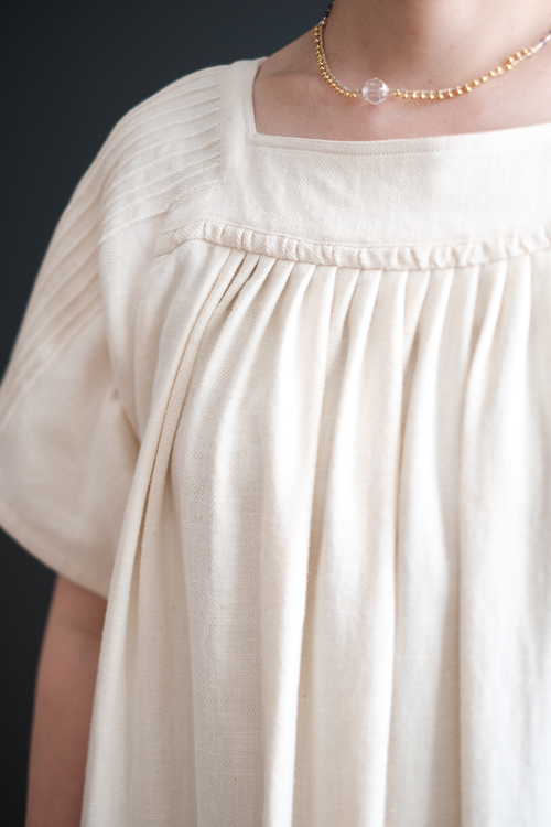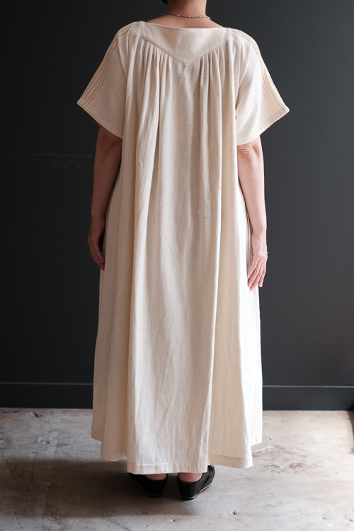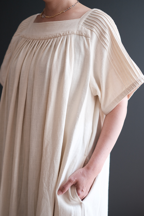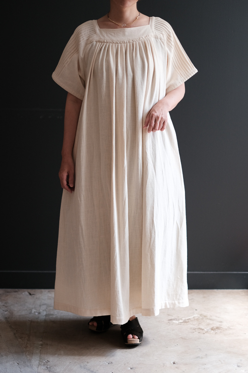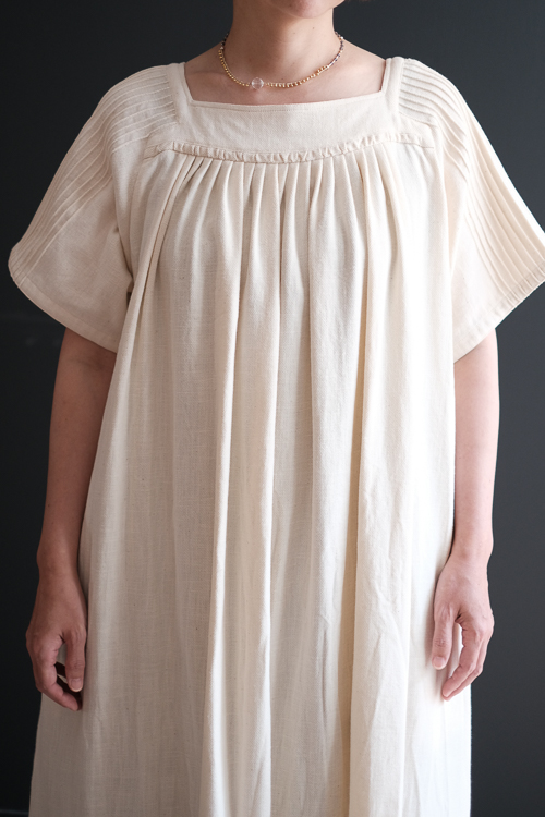 手の込んだディテールが美しいスクエアネックのワンピース。