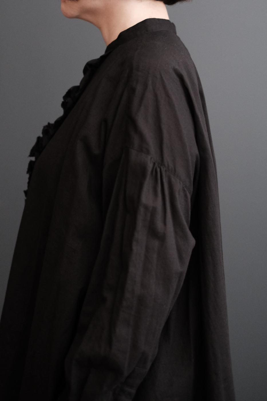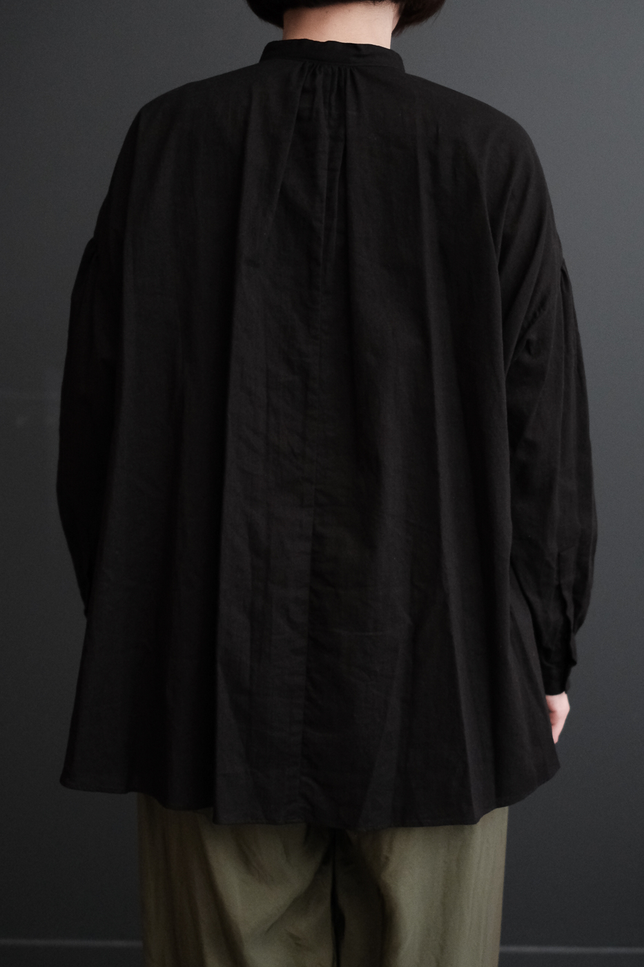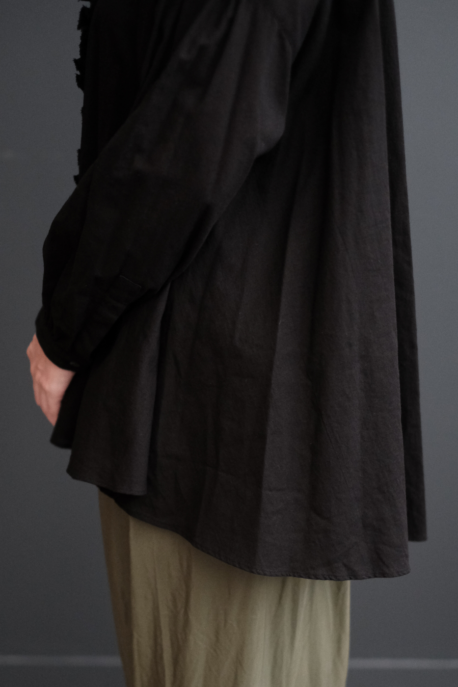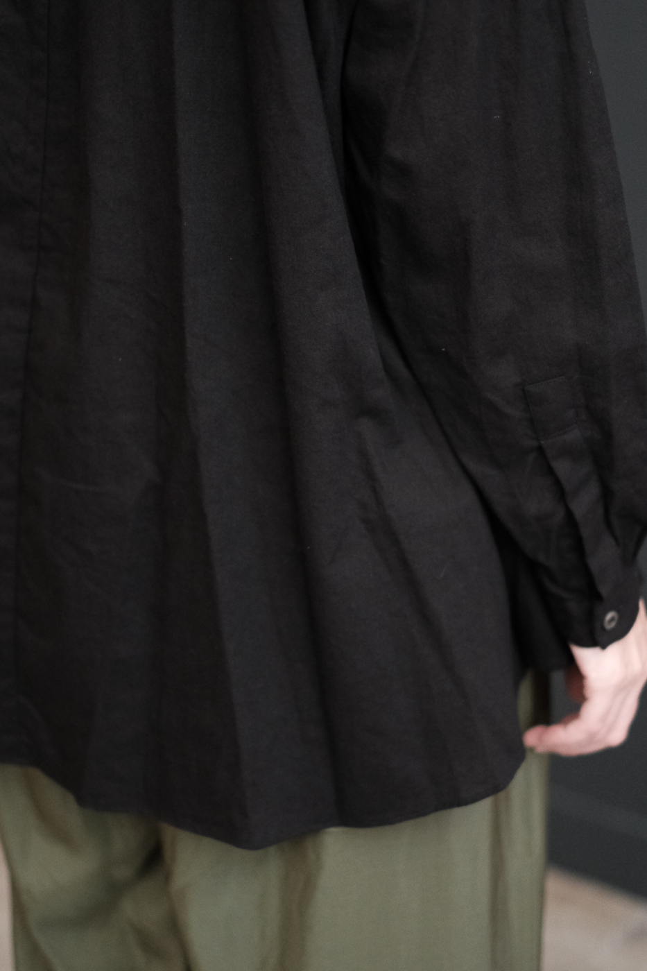 生地が袖口に溜まる雰囲気や着丈が長めで