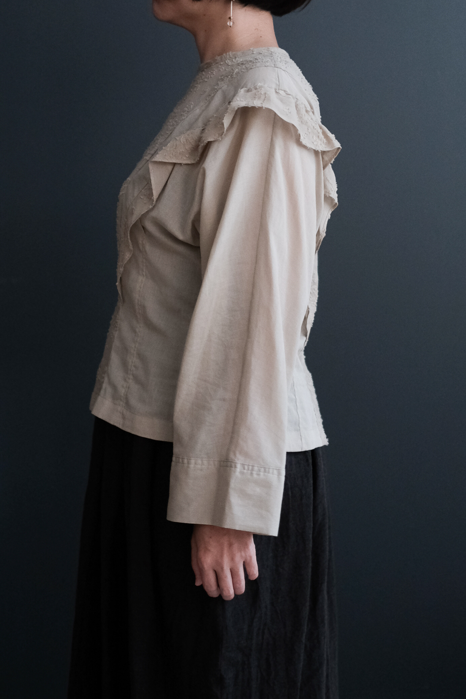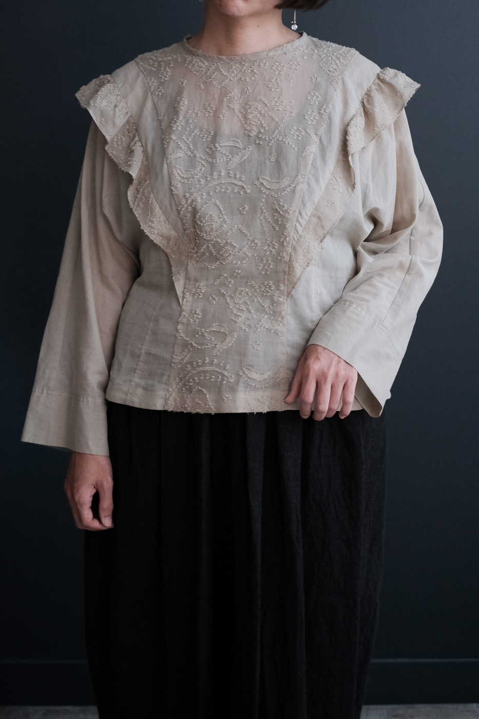 織り上げた綿ローンの2素材を組み合わせた一枚。
