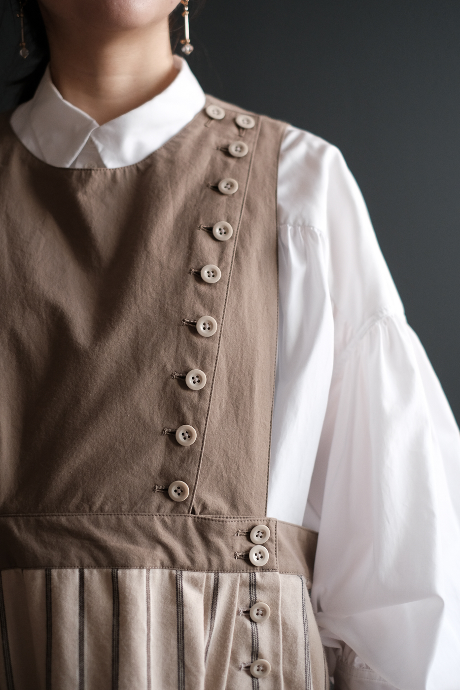 こちらよりも着丈の長いワンピースの上に重ねたり、