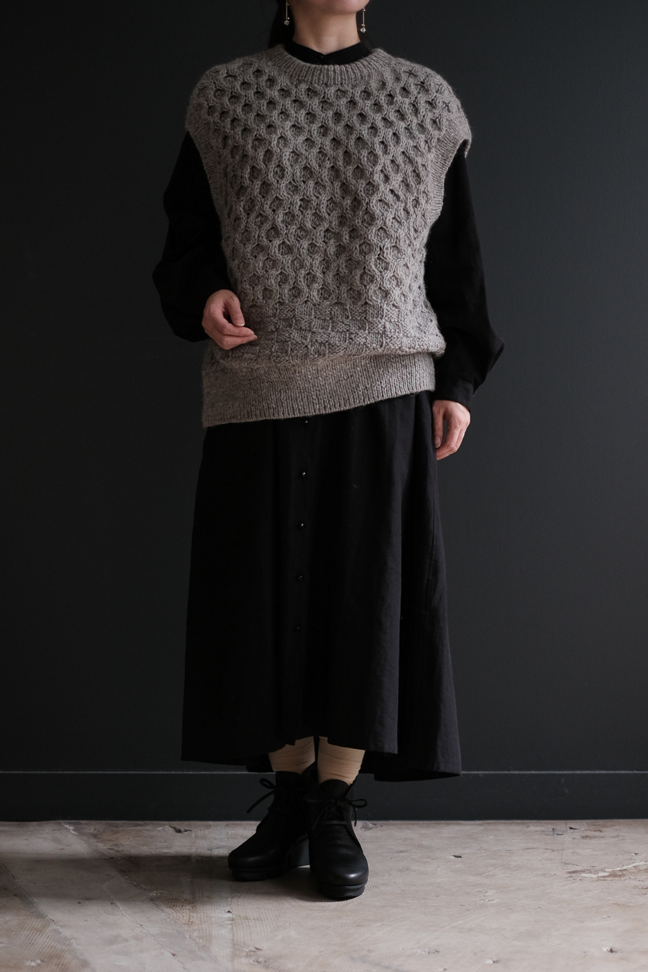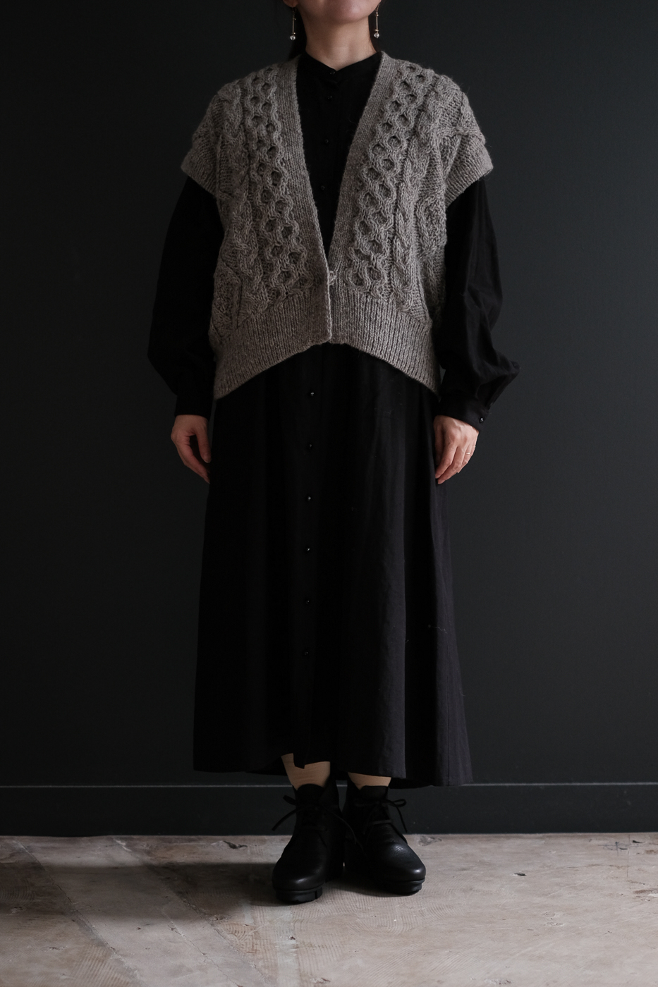 ショート丈のV開きベストとしても着用可能です。