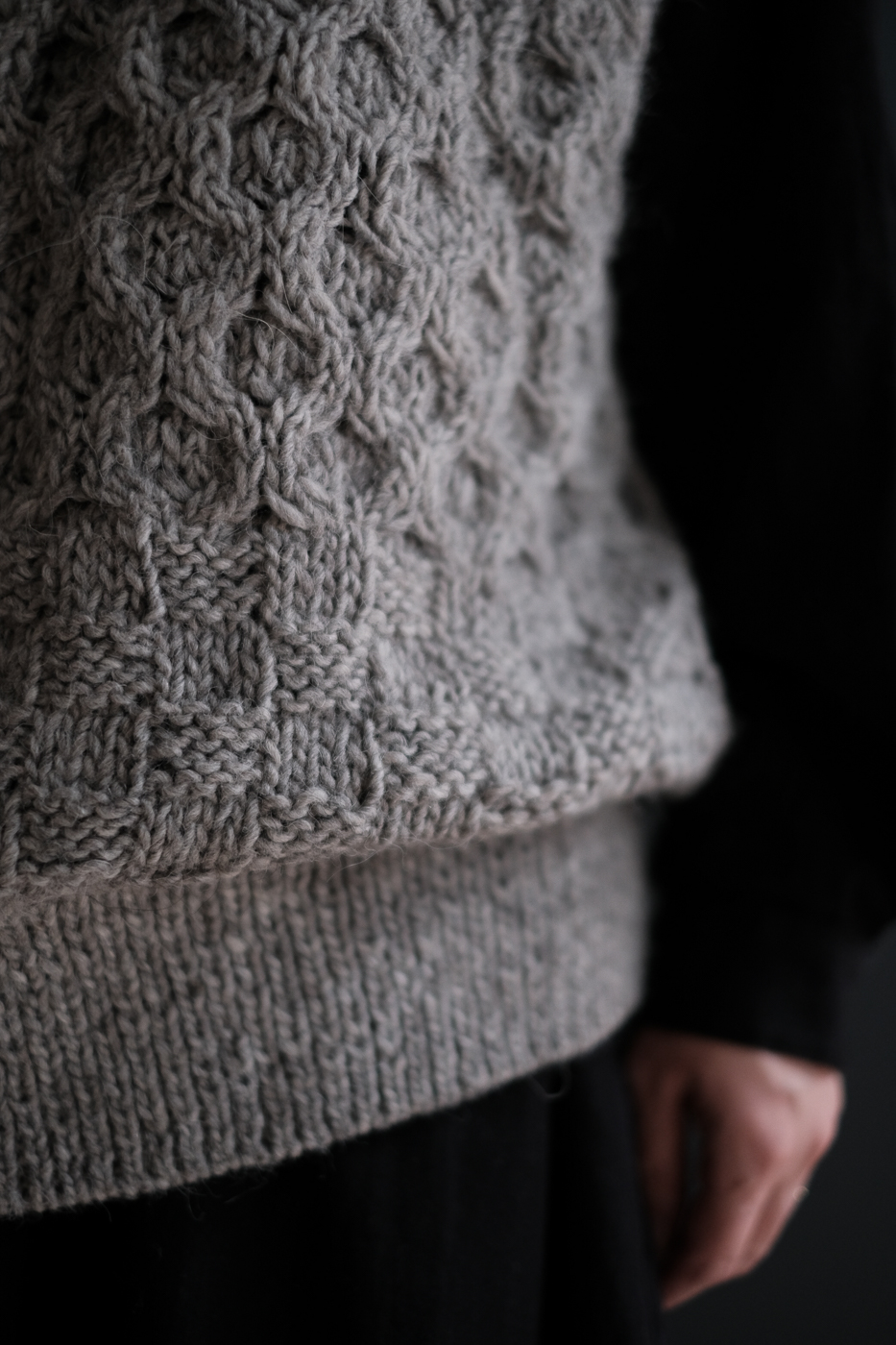 前はハニカムと鹿の子柄、後ろはケーブル柄と