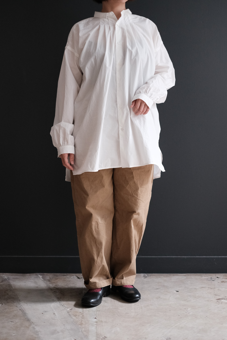スモックのようなふわりと広がるシルエットと、