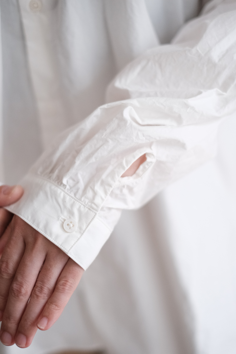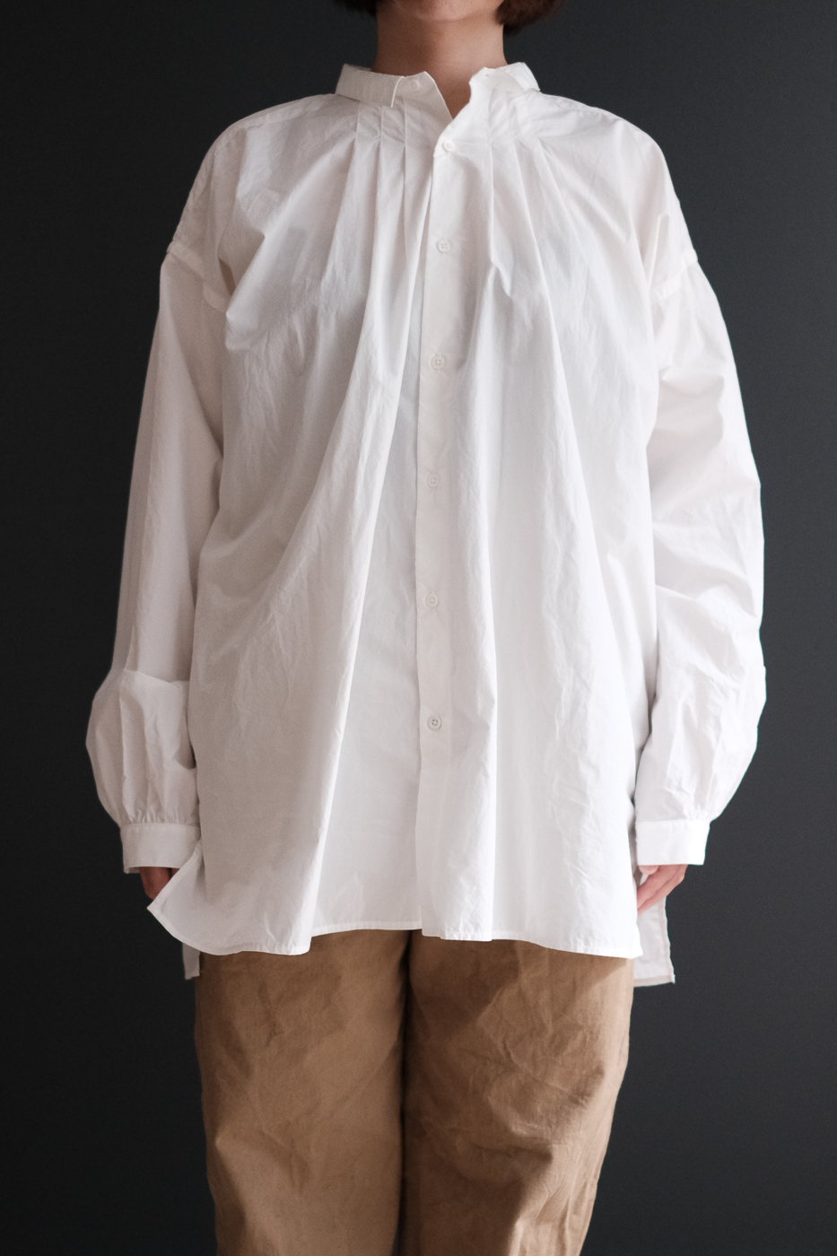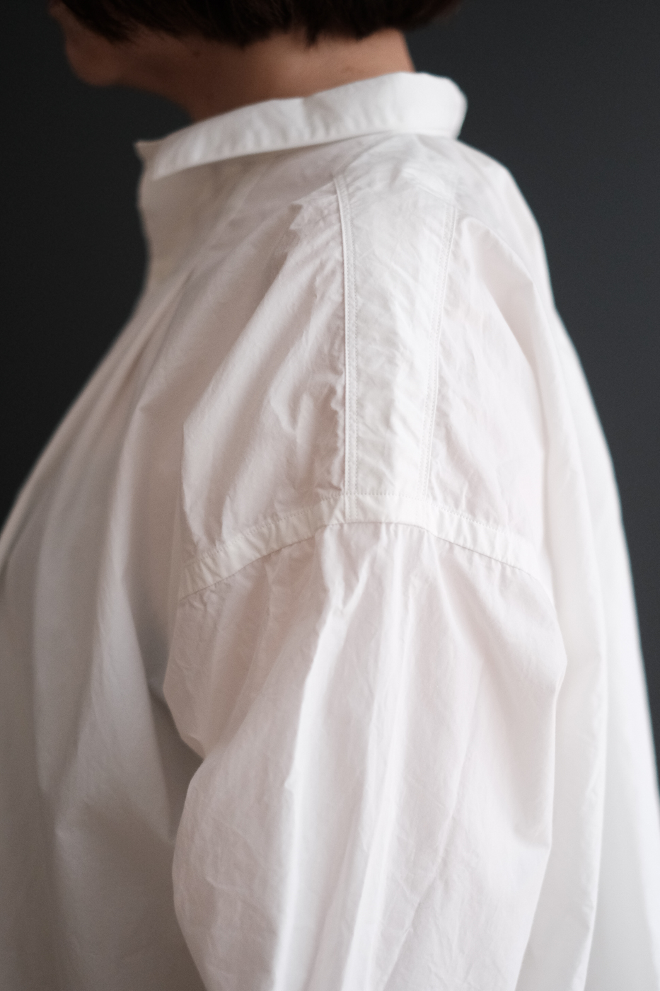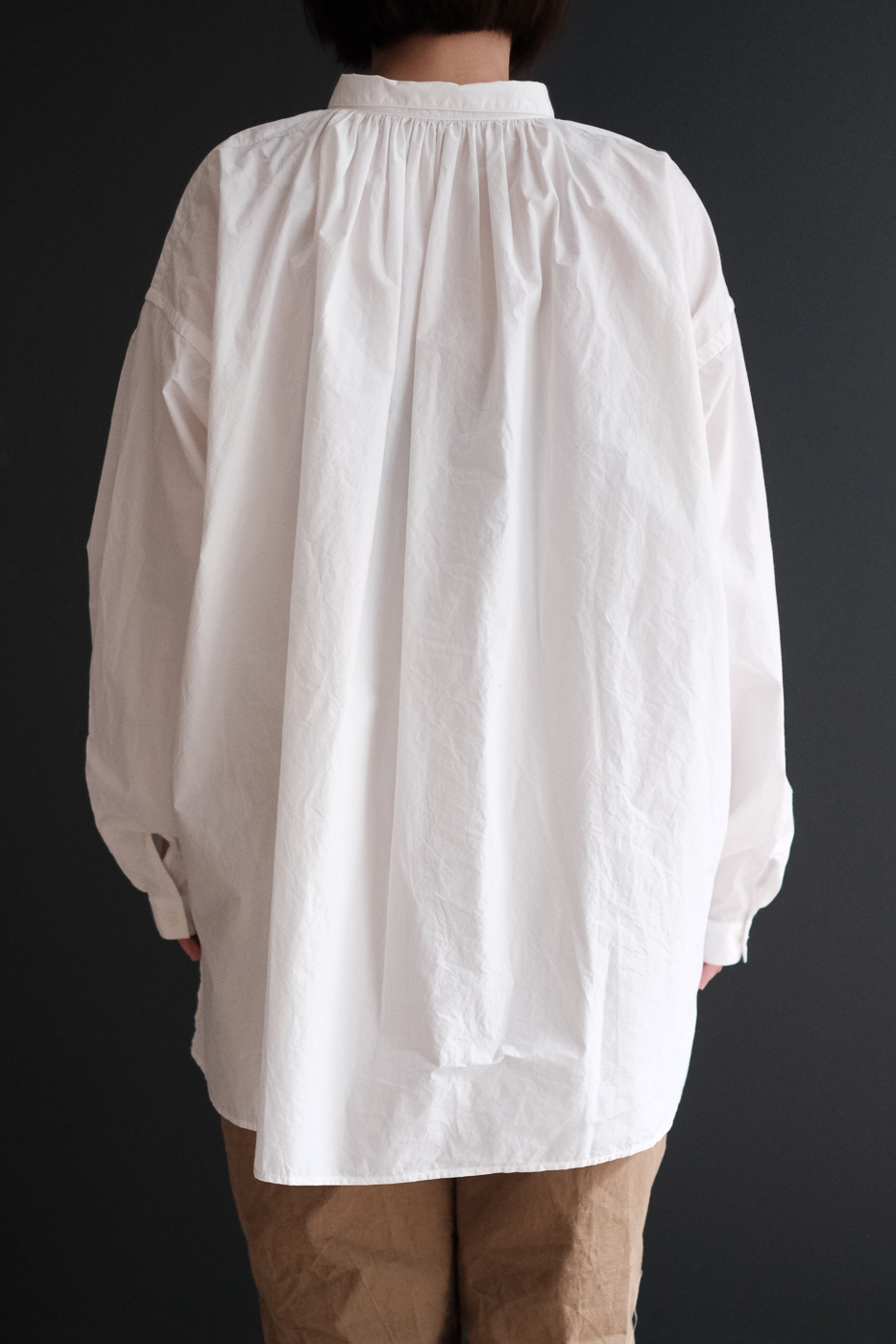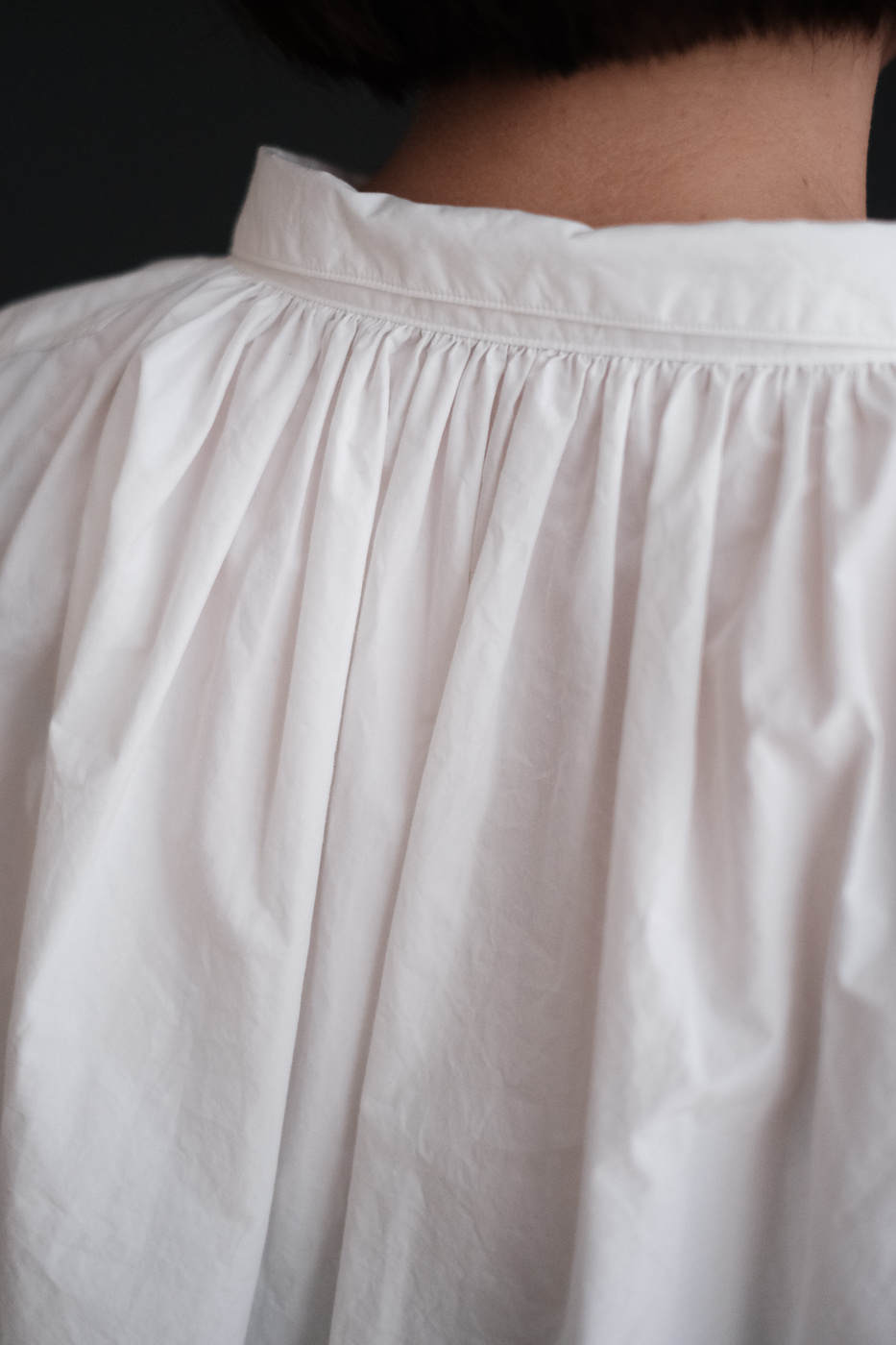 背中は台襟に沿って細やかなギャザーが施され