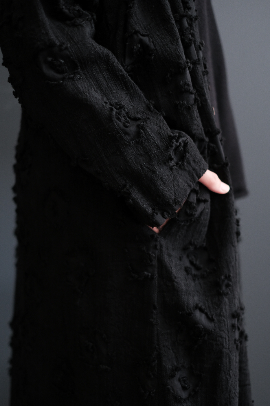 息遣いを感じるような淡いジャガードの花のモチーフ、