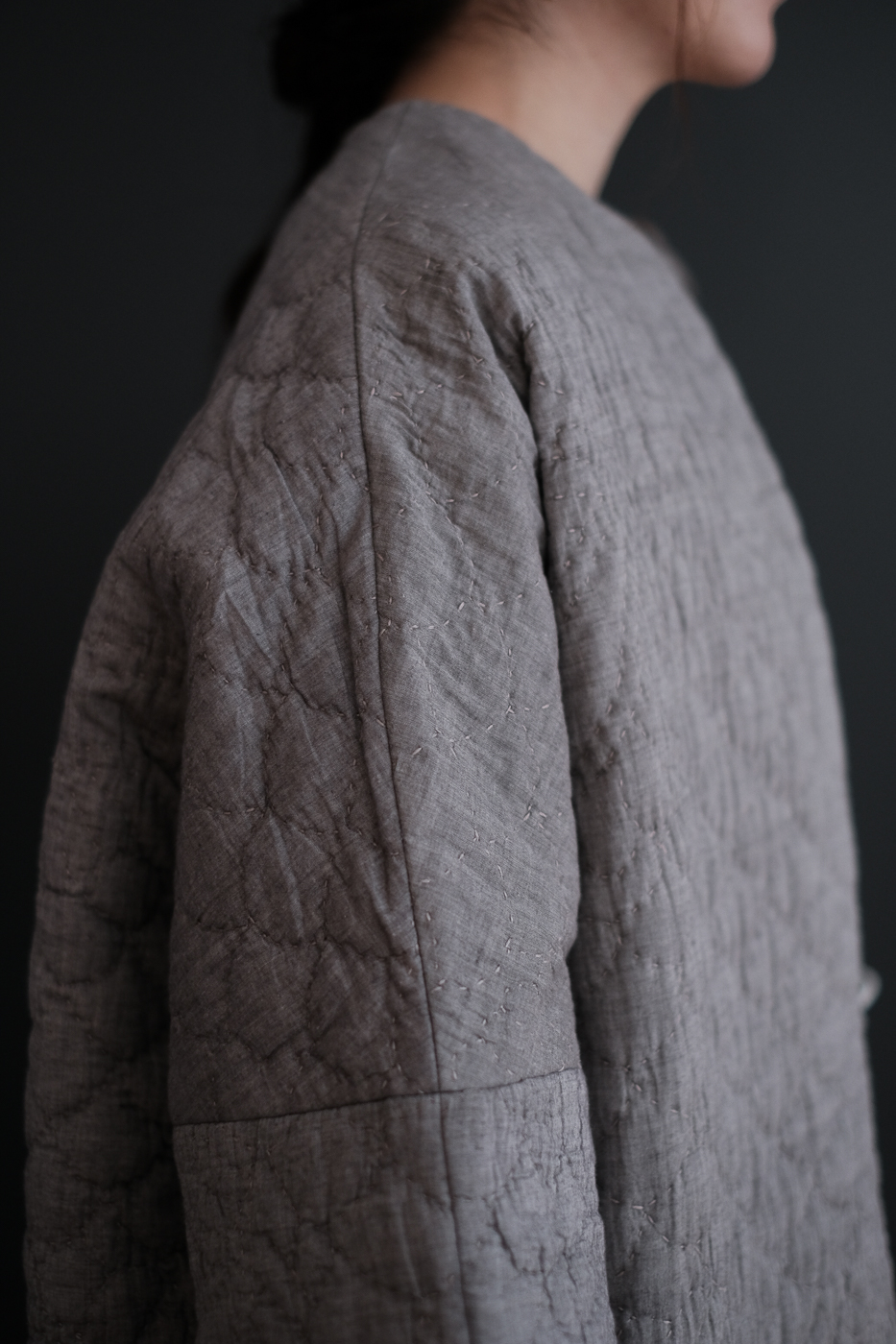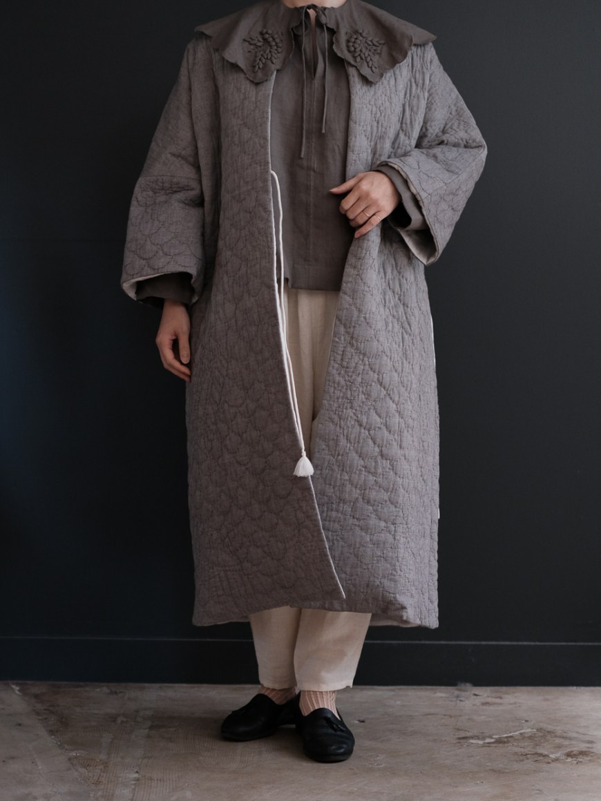 手刺繍のキルトローブ。