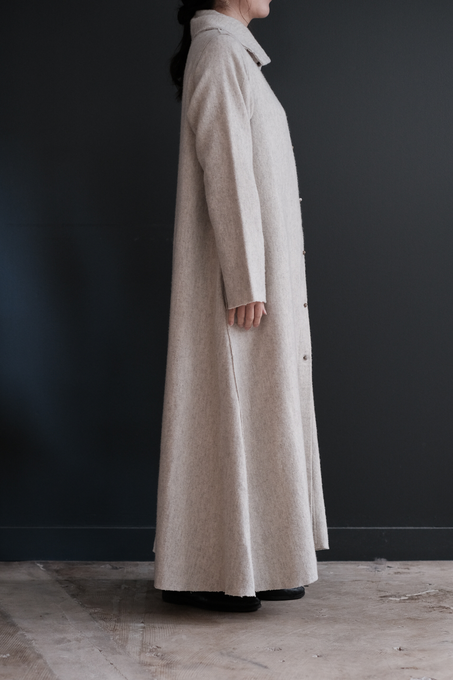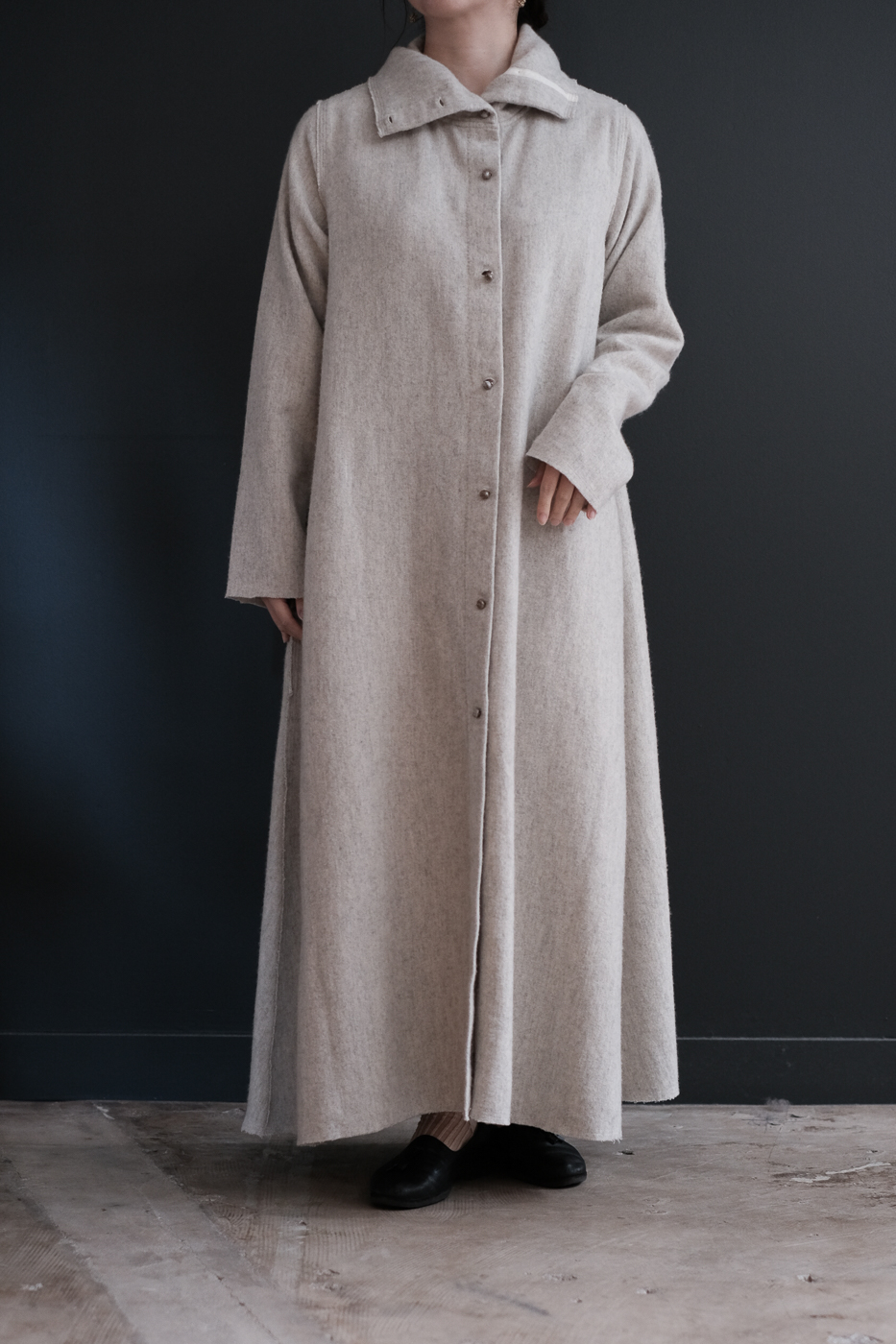 High neck long dress (Soft wool cashmere linen) col.ecru