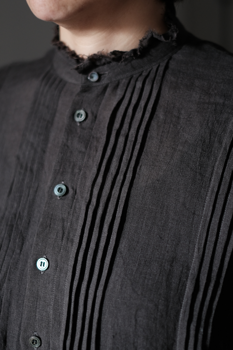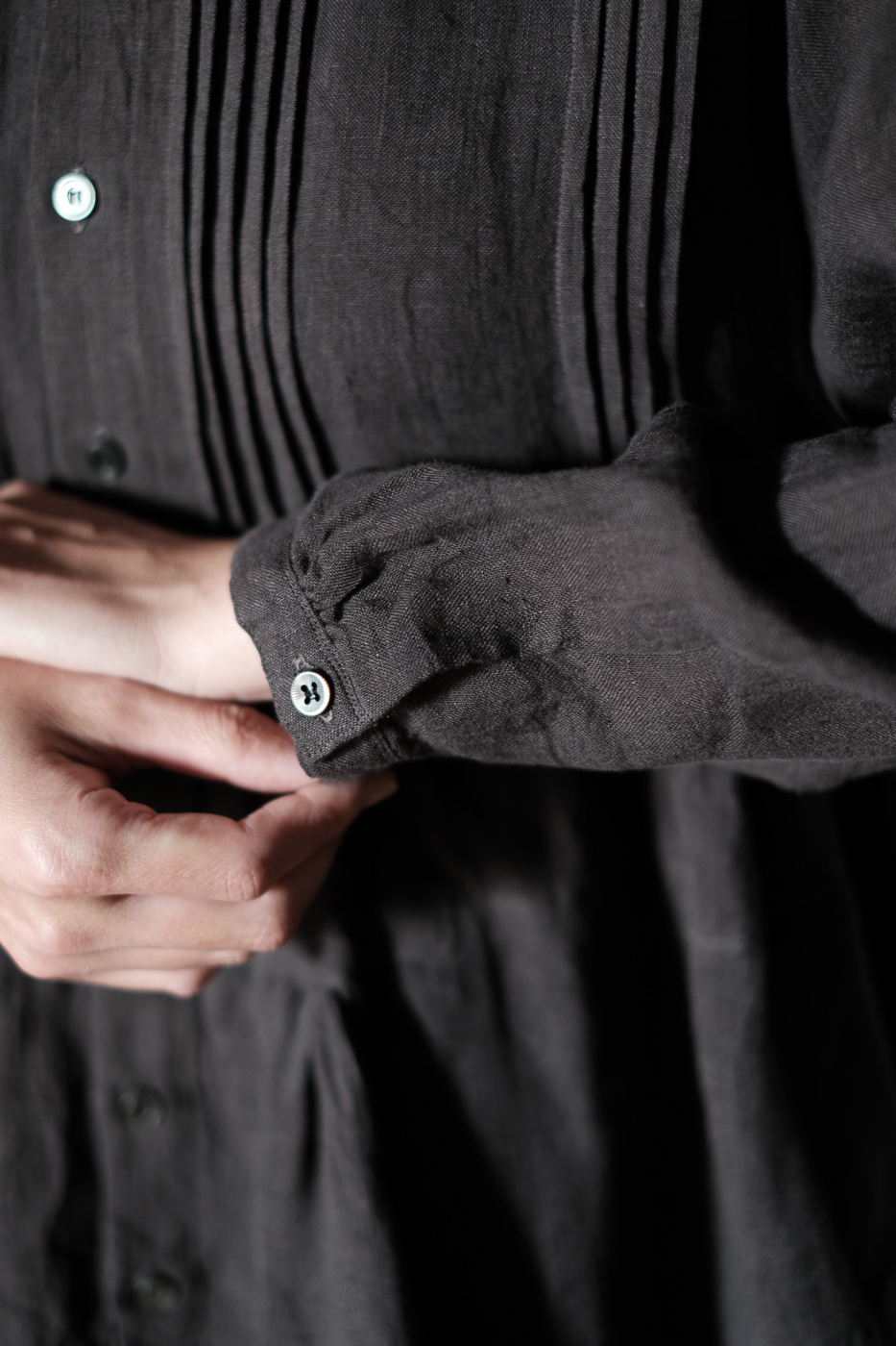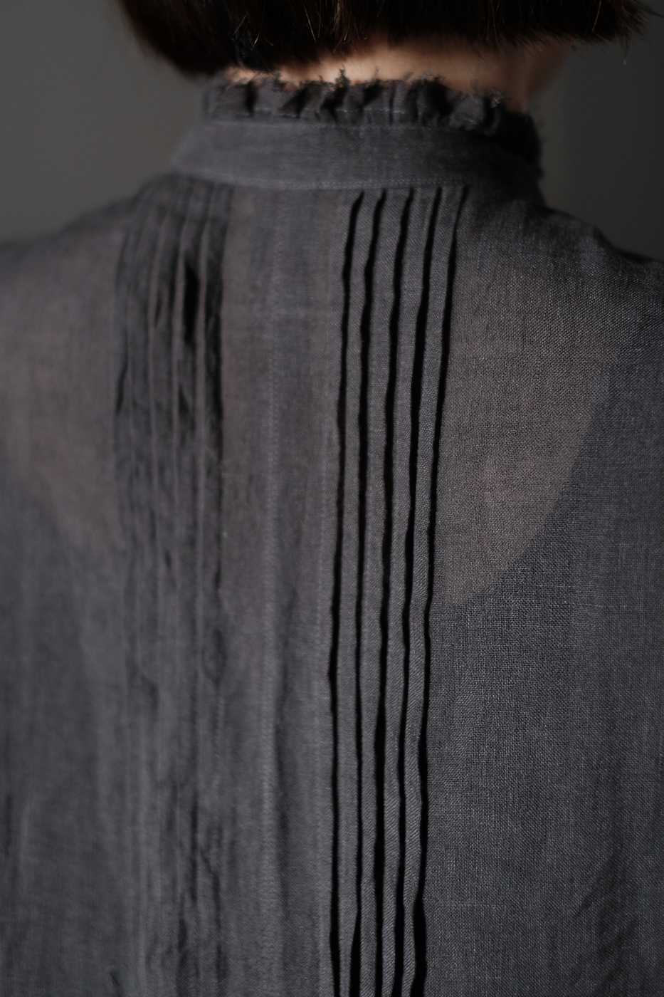 胸元に細かなピンタックが配された、