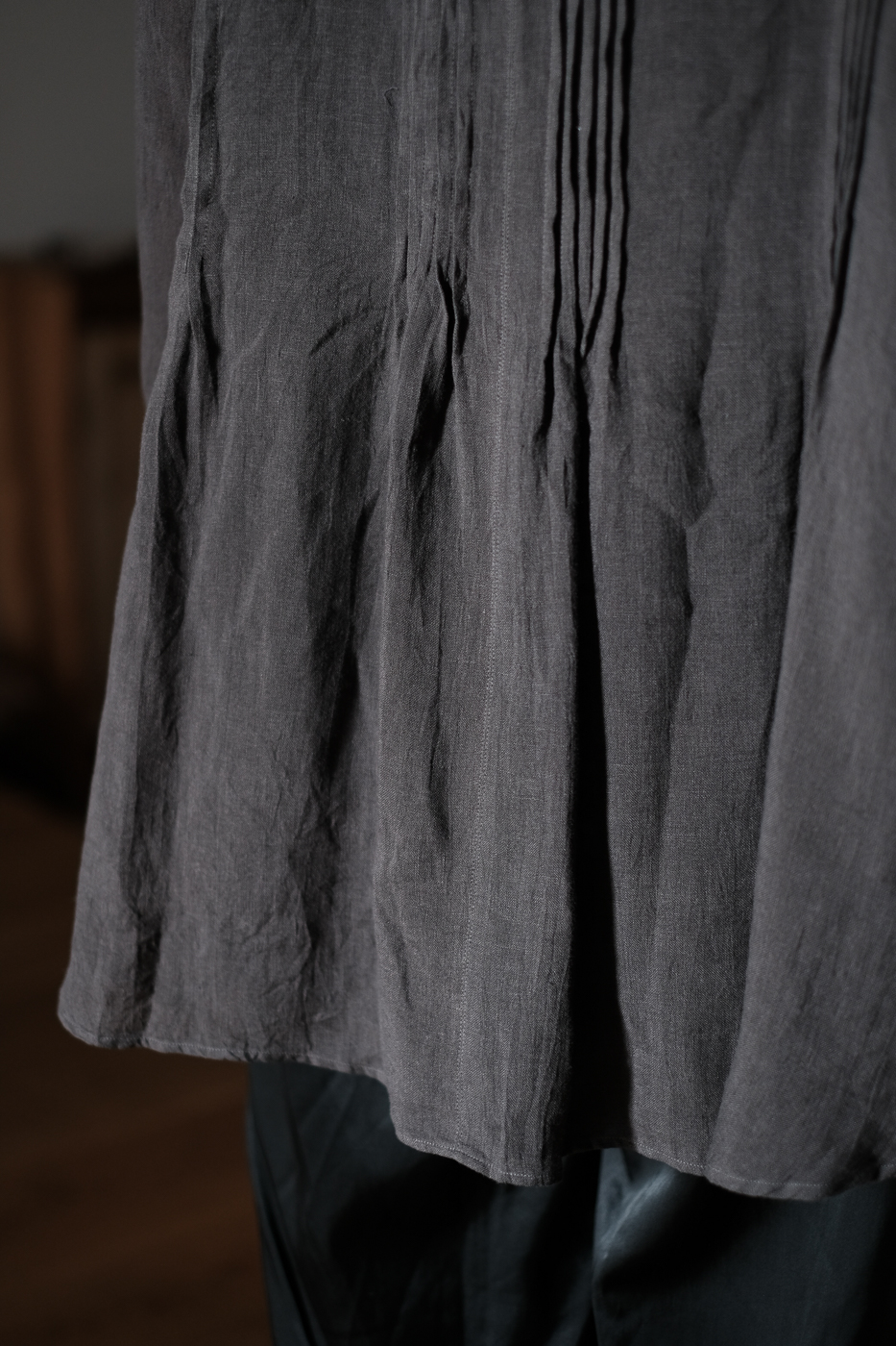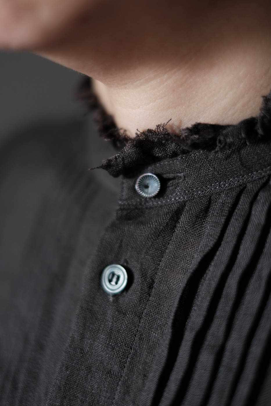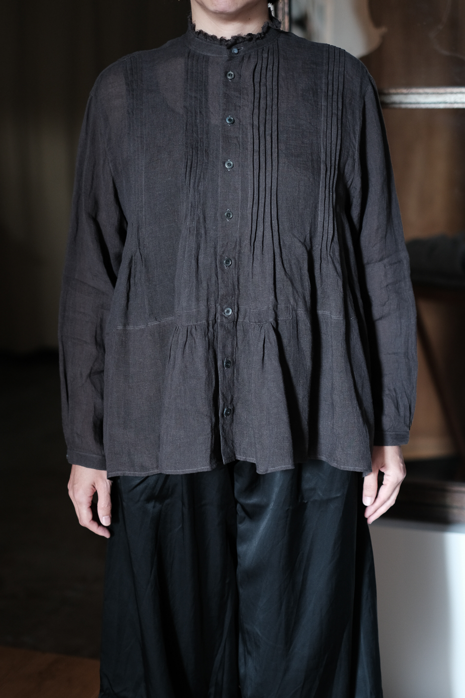 胸元に細かなピンタックが配された、