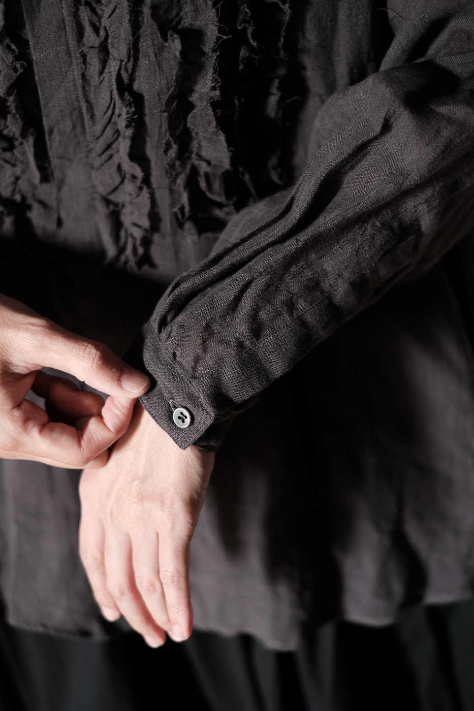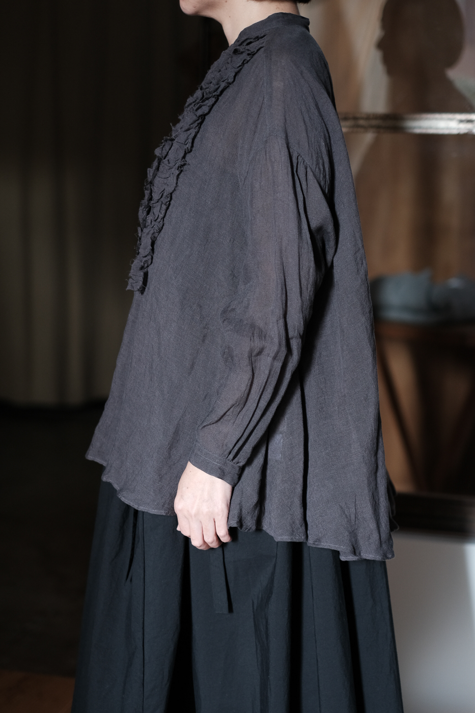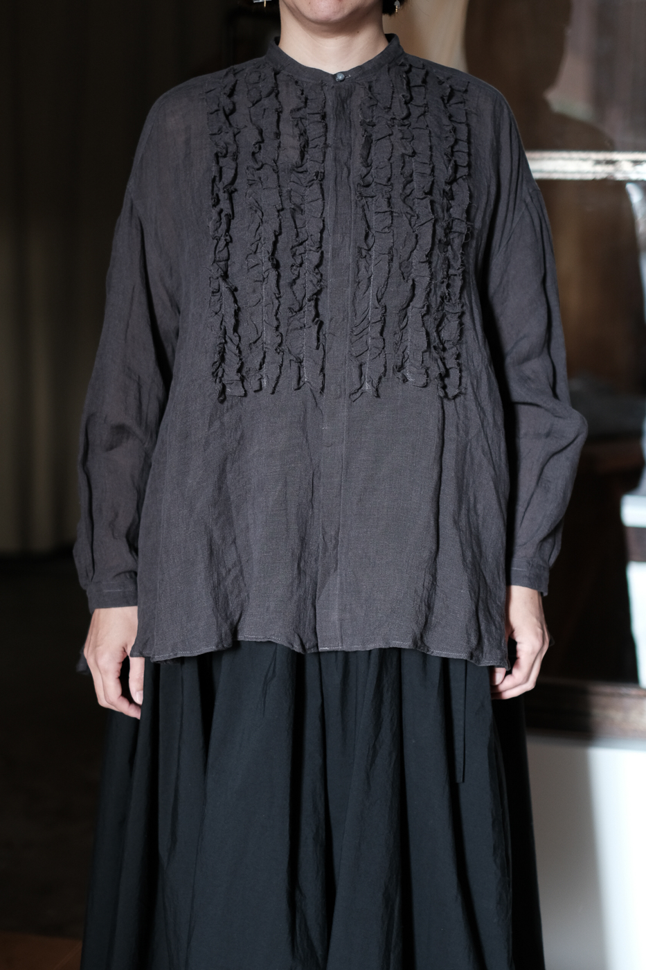 frilled blouse col.dark bronze