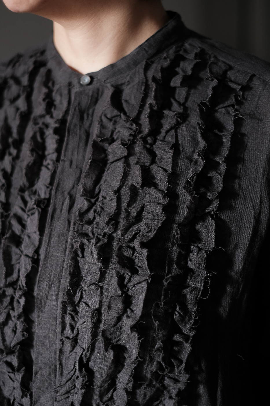 胸元に細かなフリルが配されており、