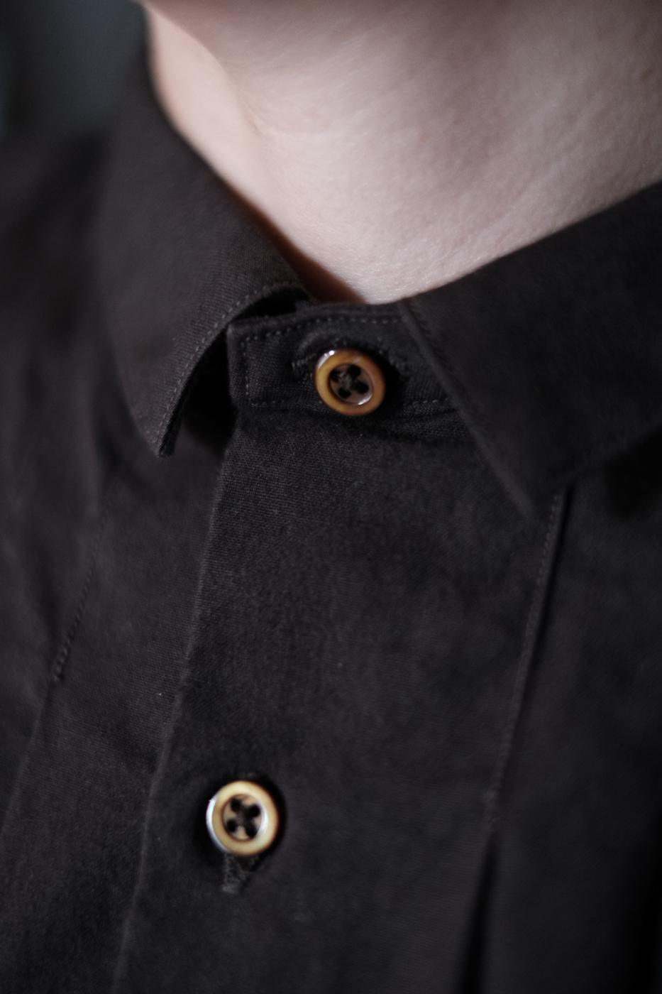 フロントの衿下に施されたタックと、肩のヨーク部分、