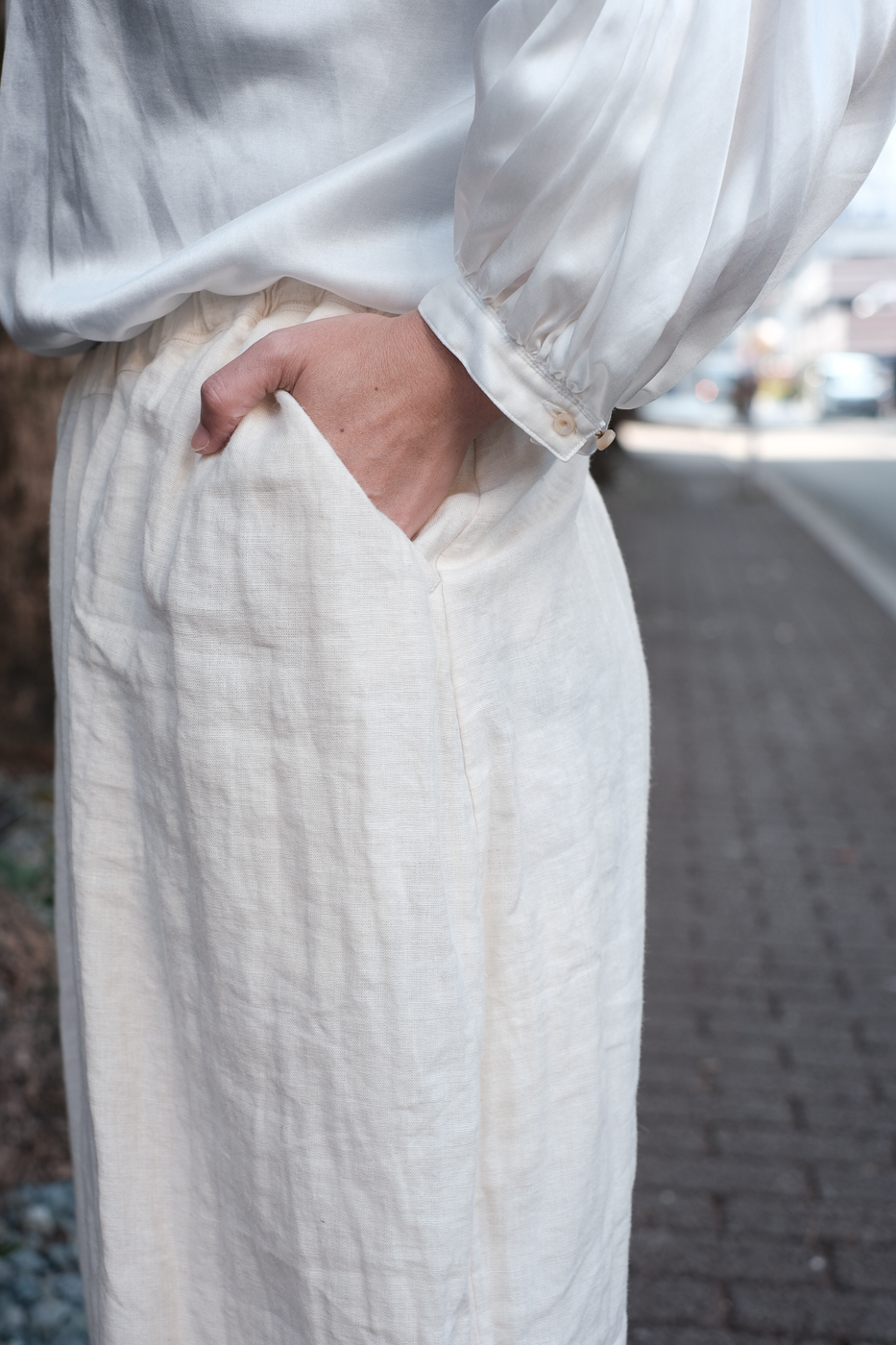 麻素材ならではのシワ感は