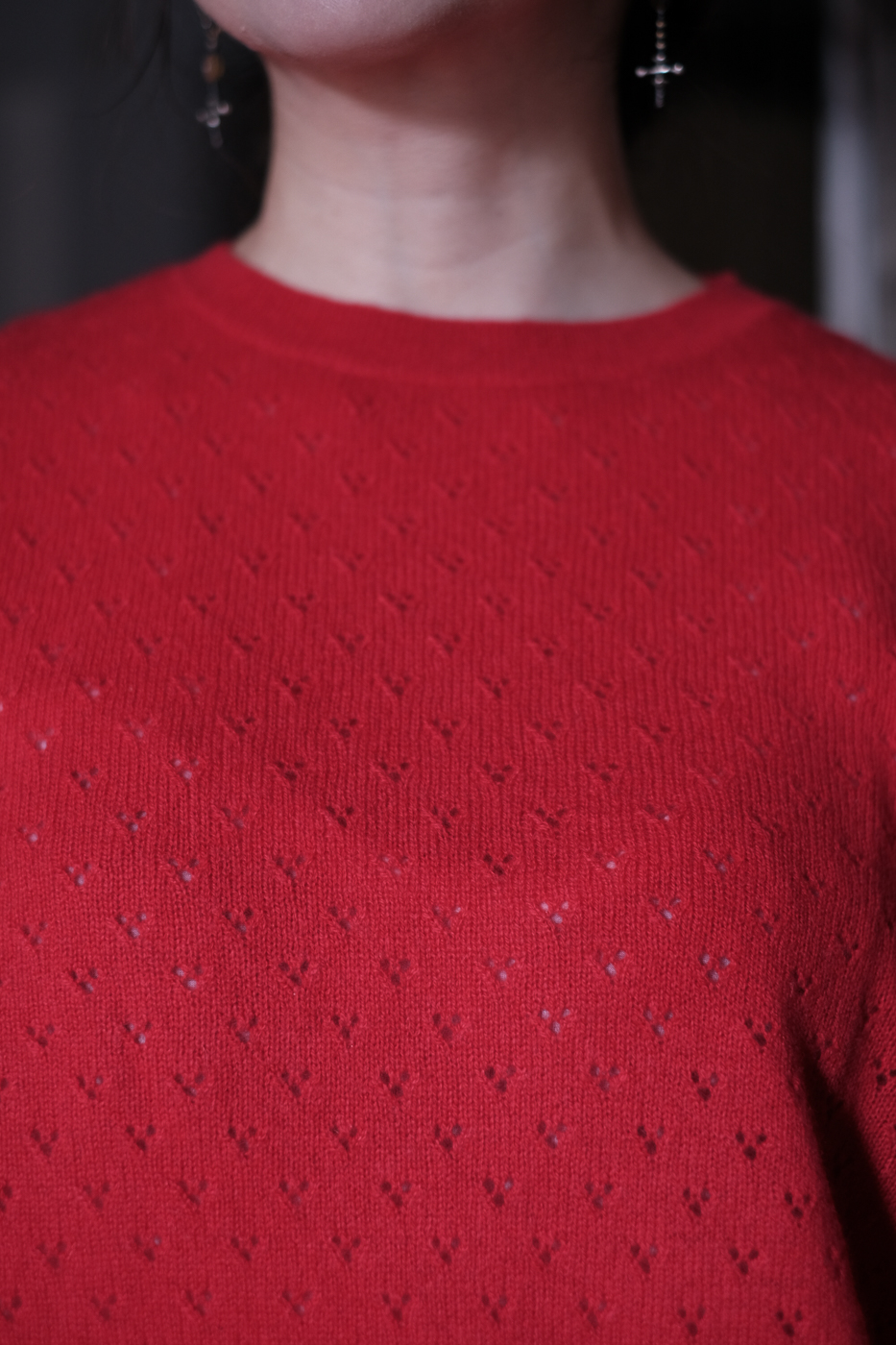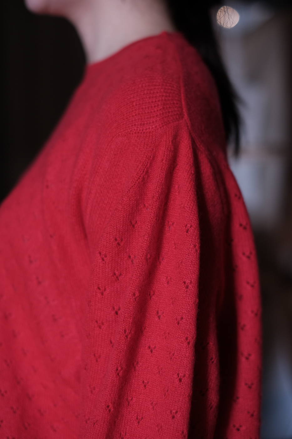 透かし編みの編地がとても可愛らしいニット。