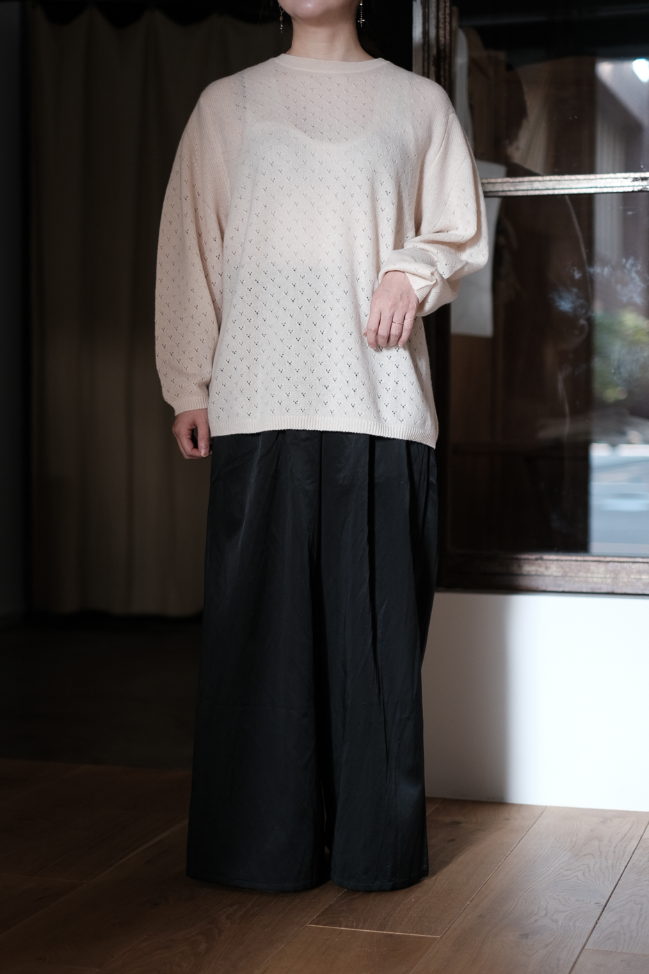 透かし編みの編地がとても可愛らしいニット。