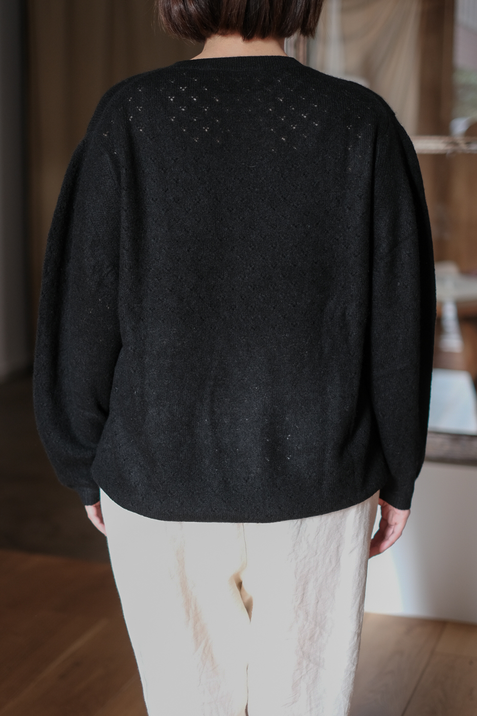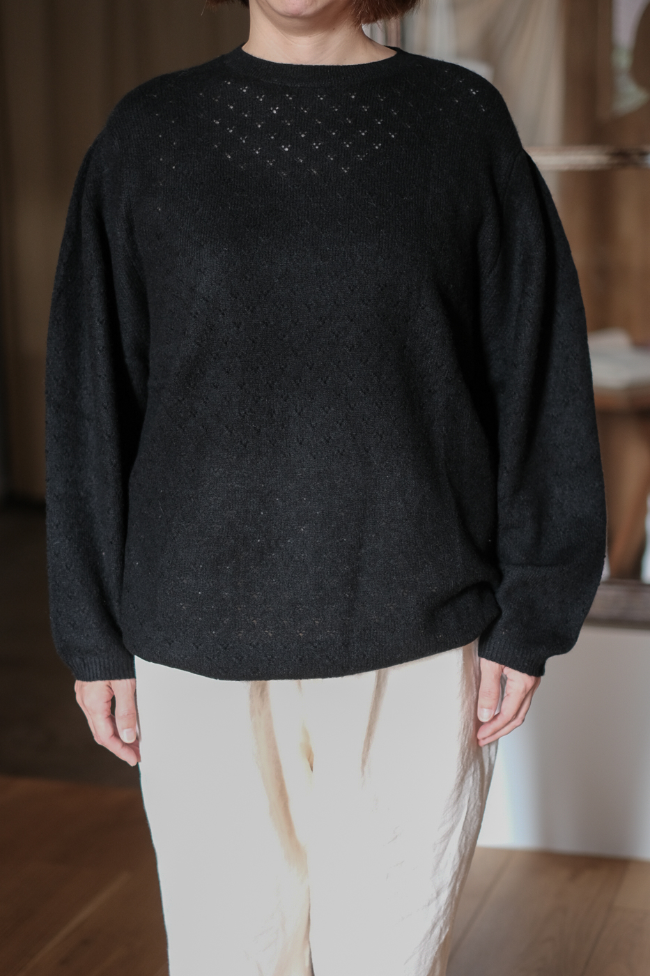 透かし編みの編地がとても可愛らしいニット。
