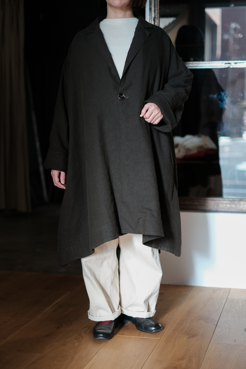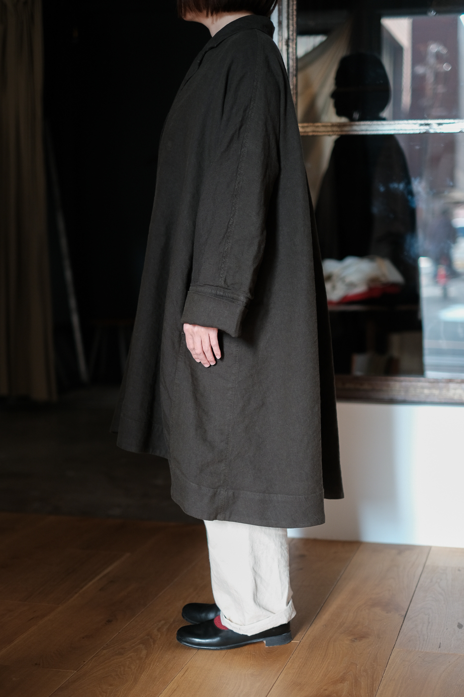 A-line over coat (Broken twill) col.khaki