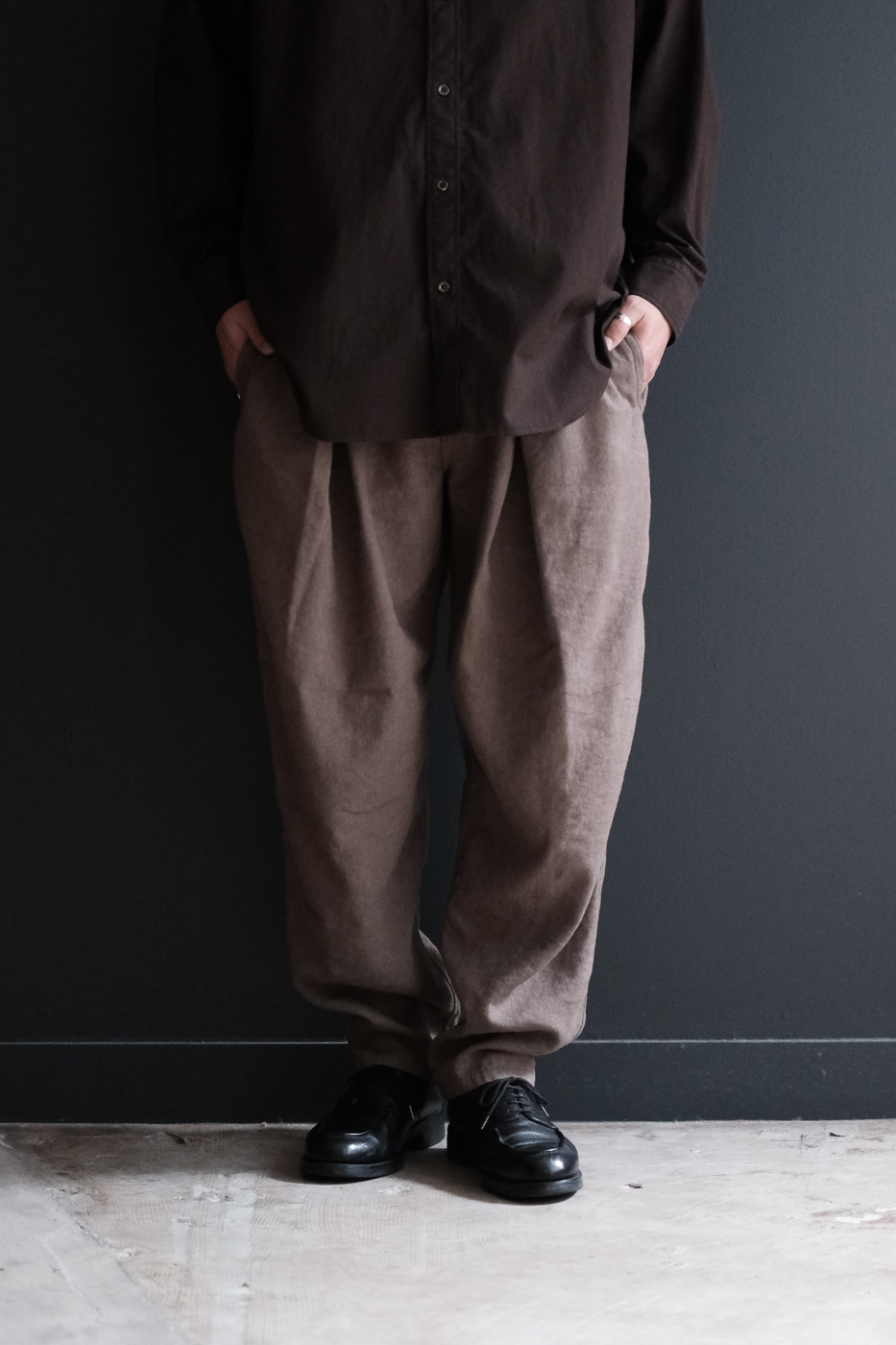 ひざ下から裾にかけて細くなるテーパードパンツ。