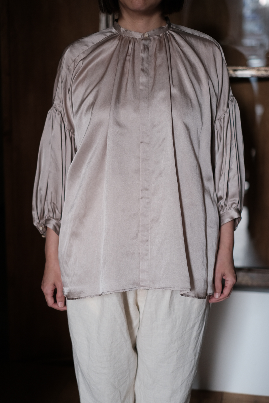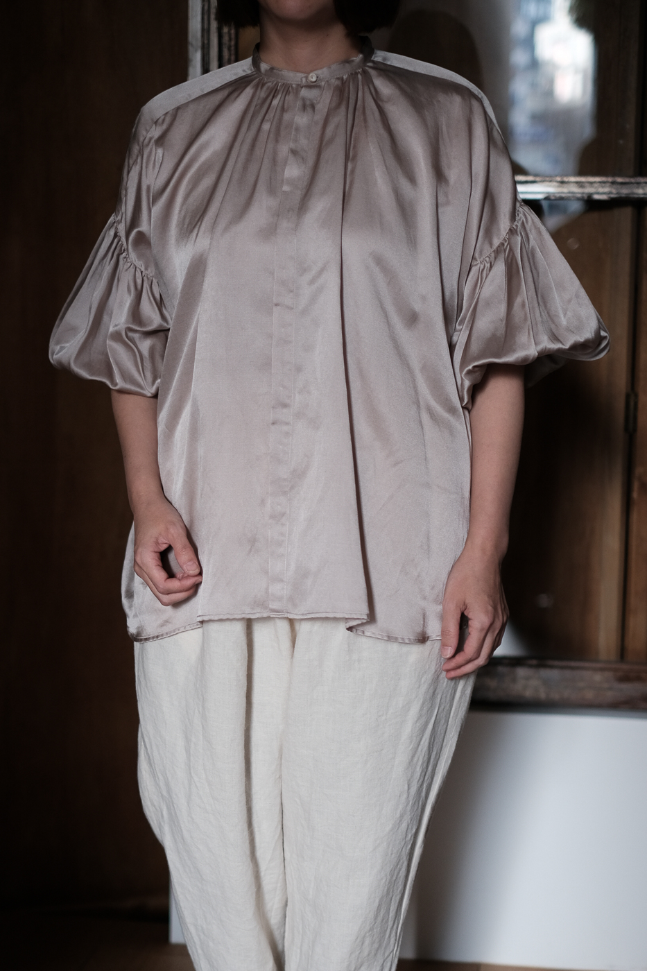 puff-sleeve blouse col.frost grey