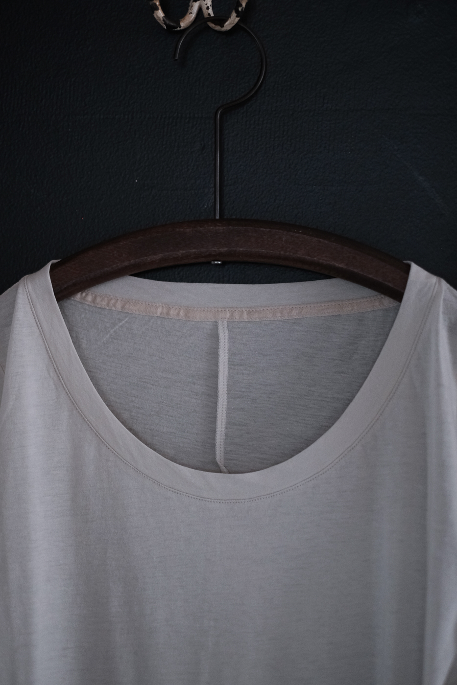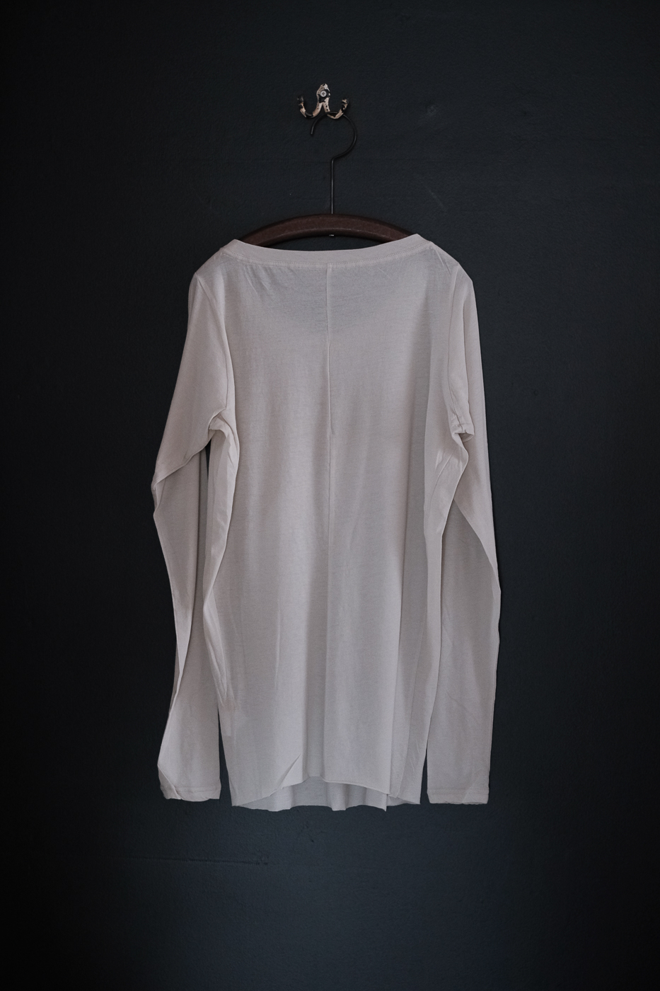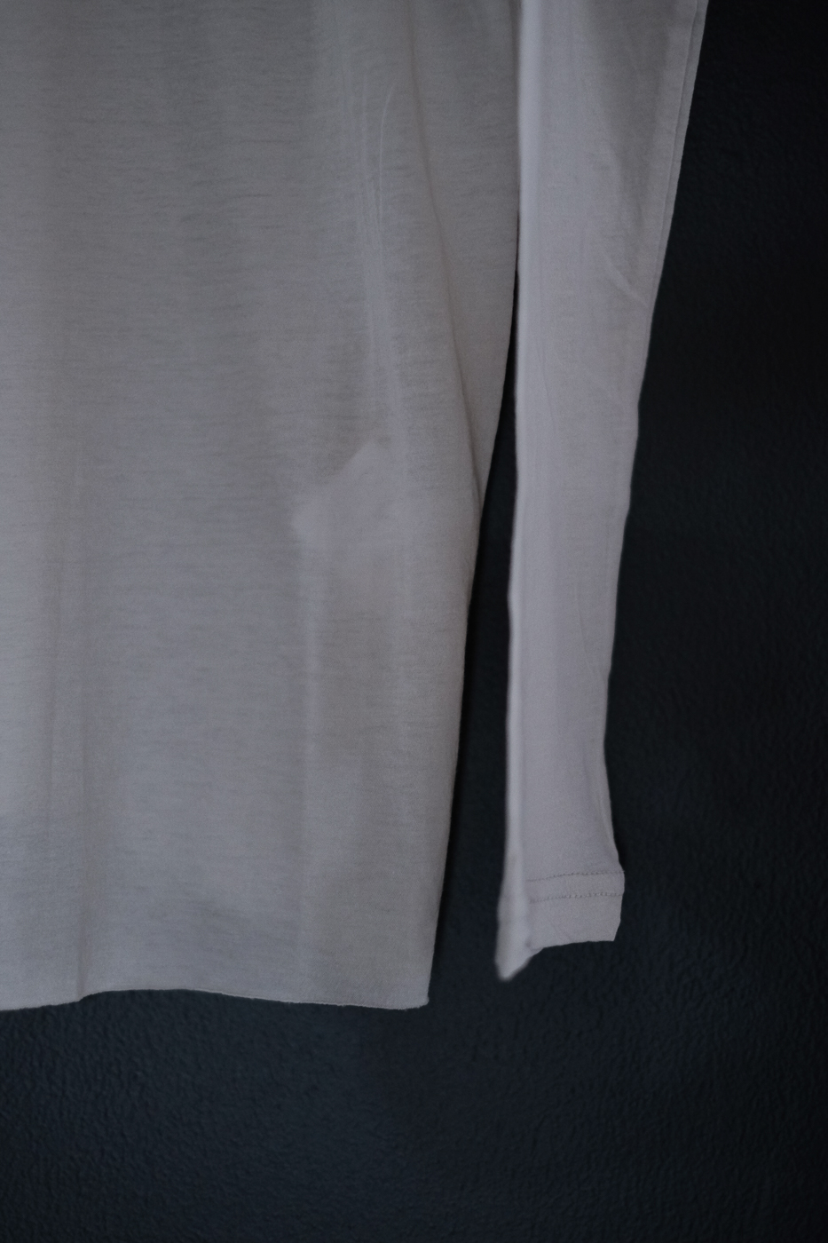 極薄の生地で仕上げた、丸首の長袖のカットソーです。