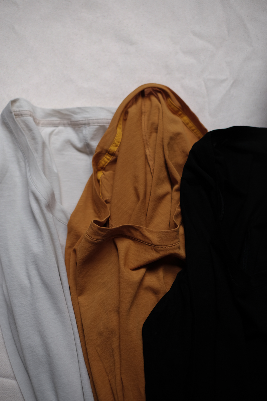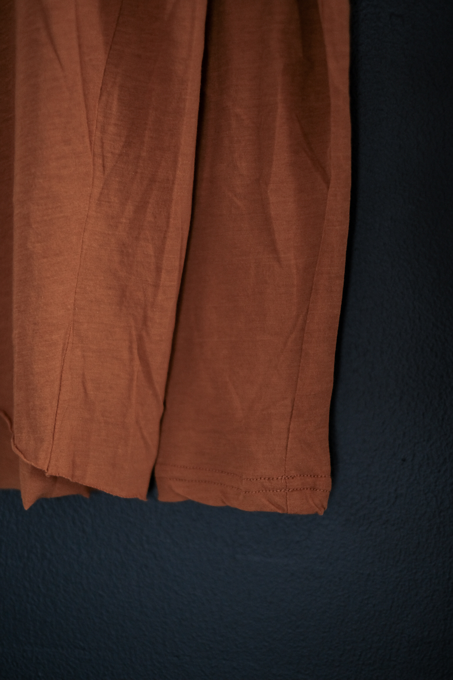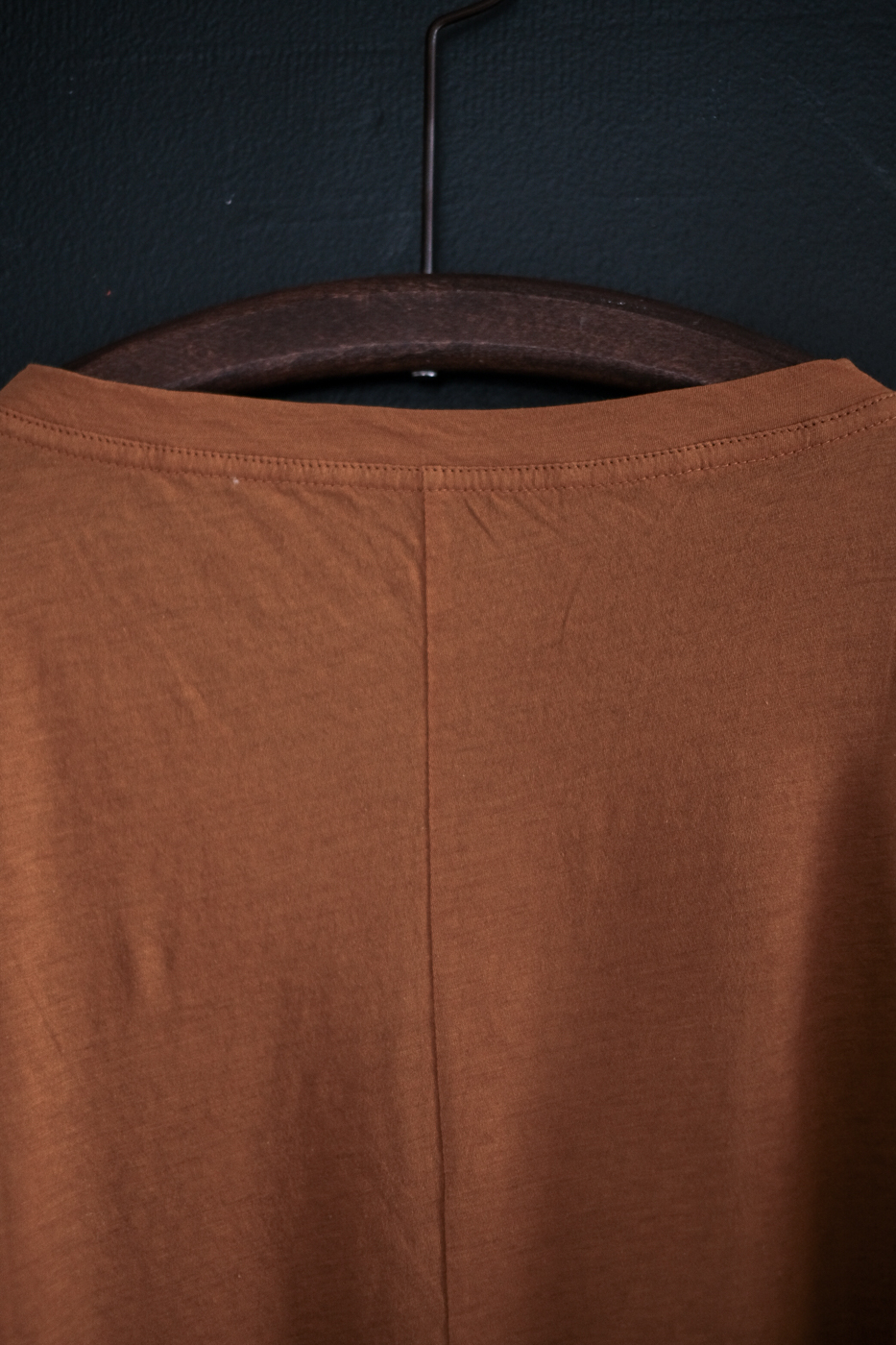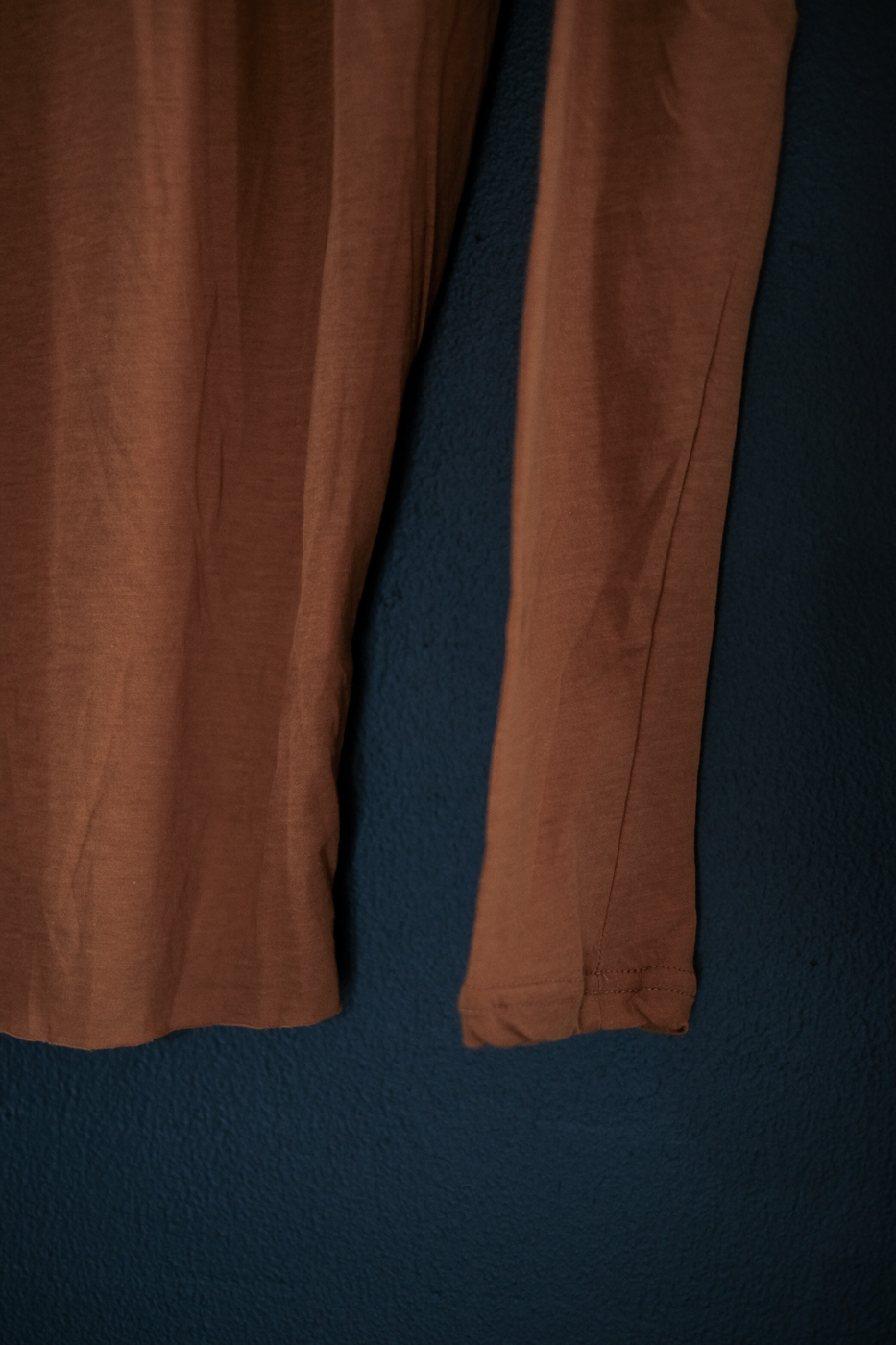 極薄の生地で仕上げた、丸首の長袖のカットソーです。
