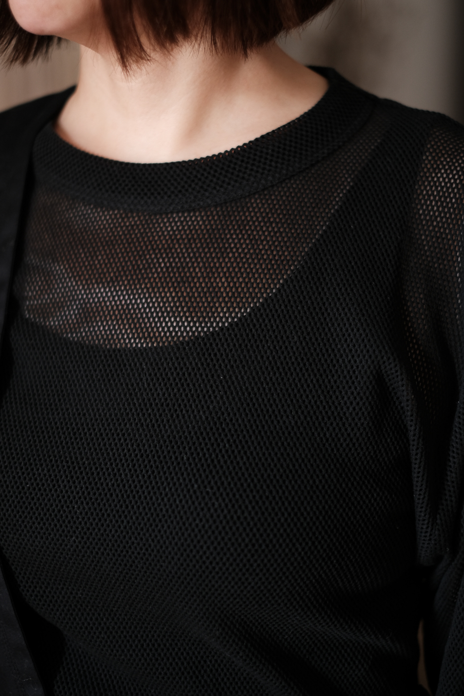 No.8 Where the fog clears メッシュロングスリーブトップス col.black
