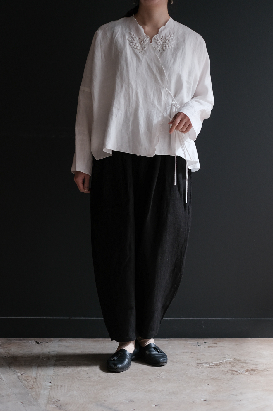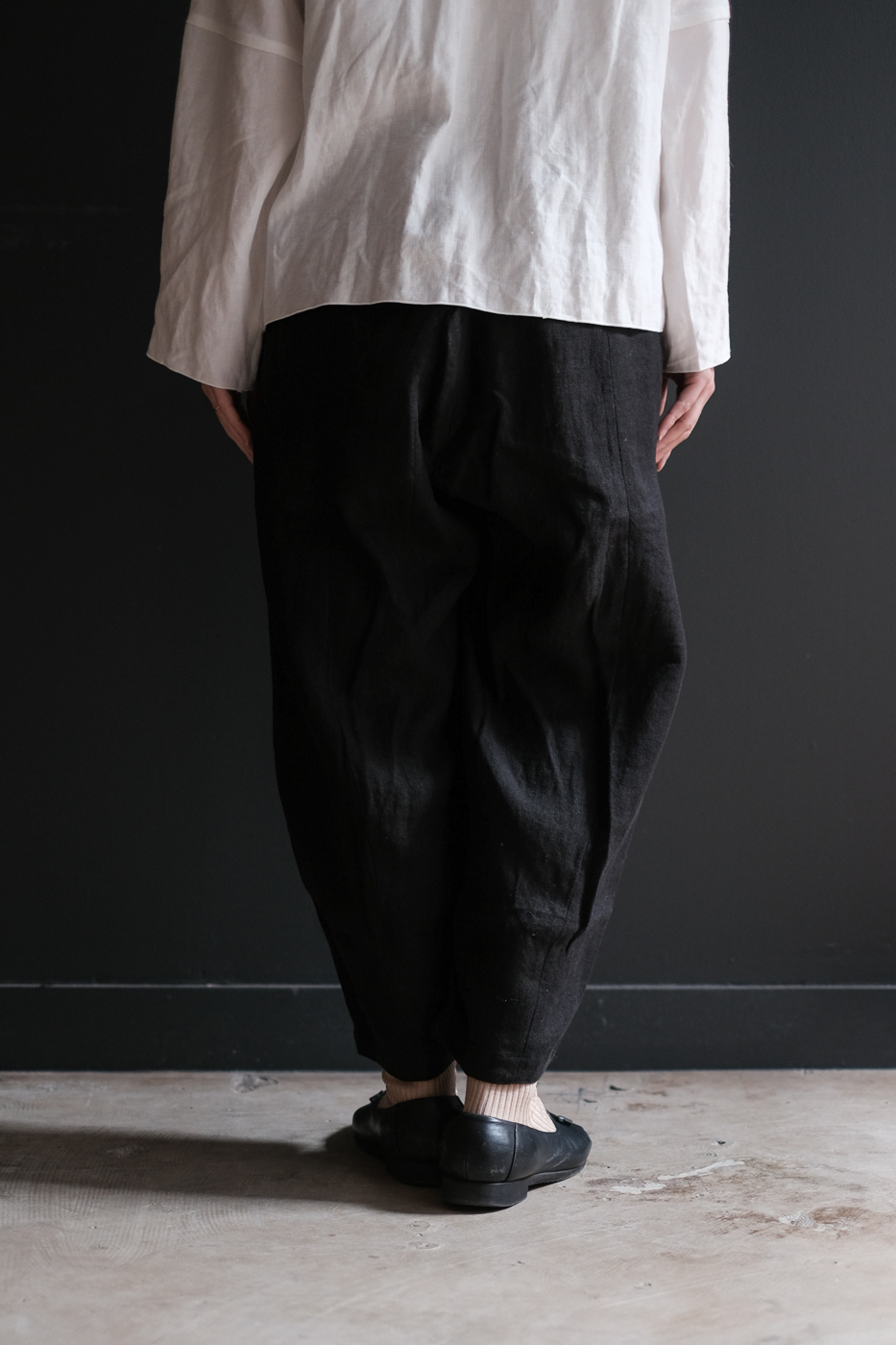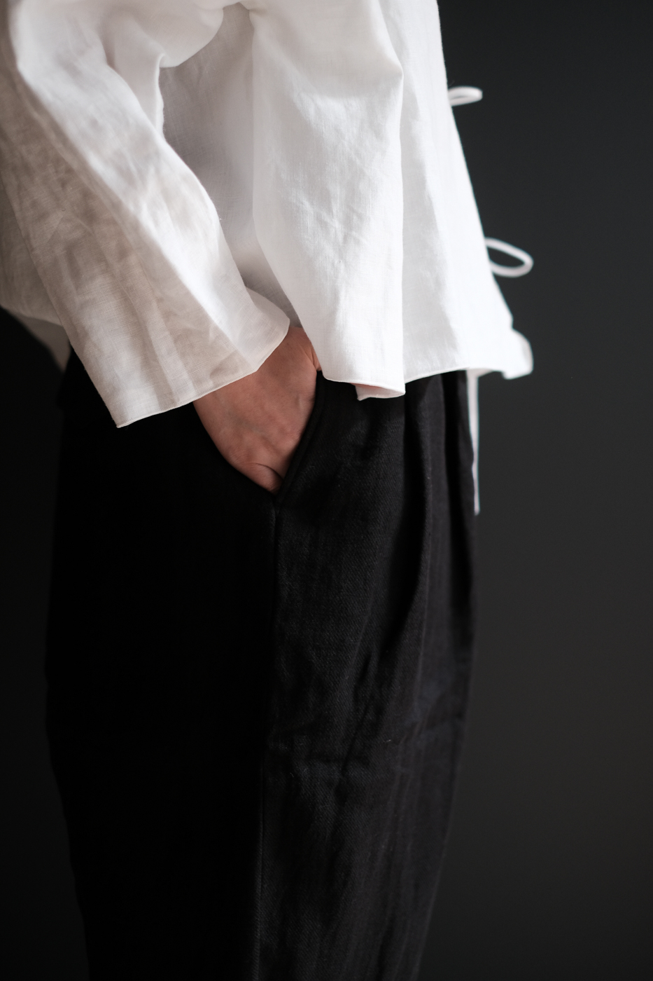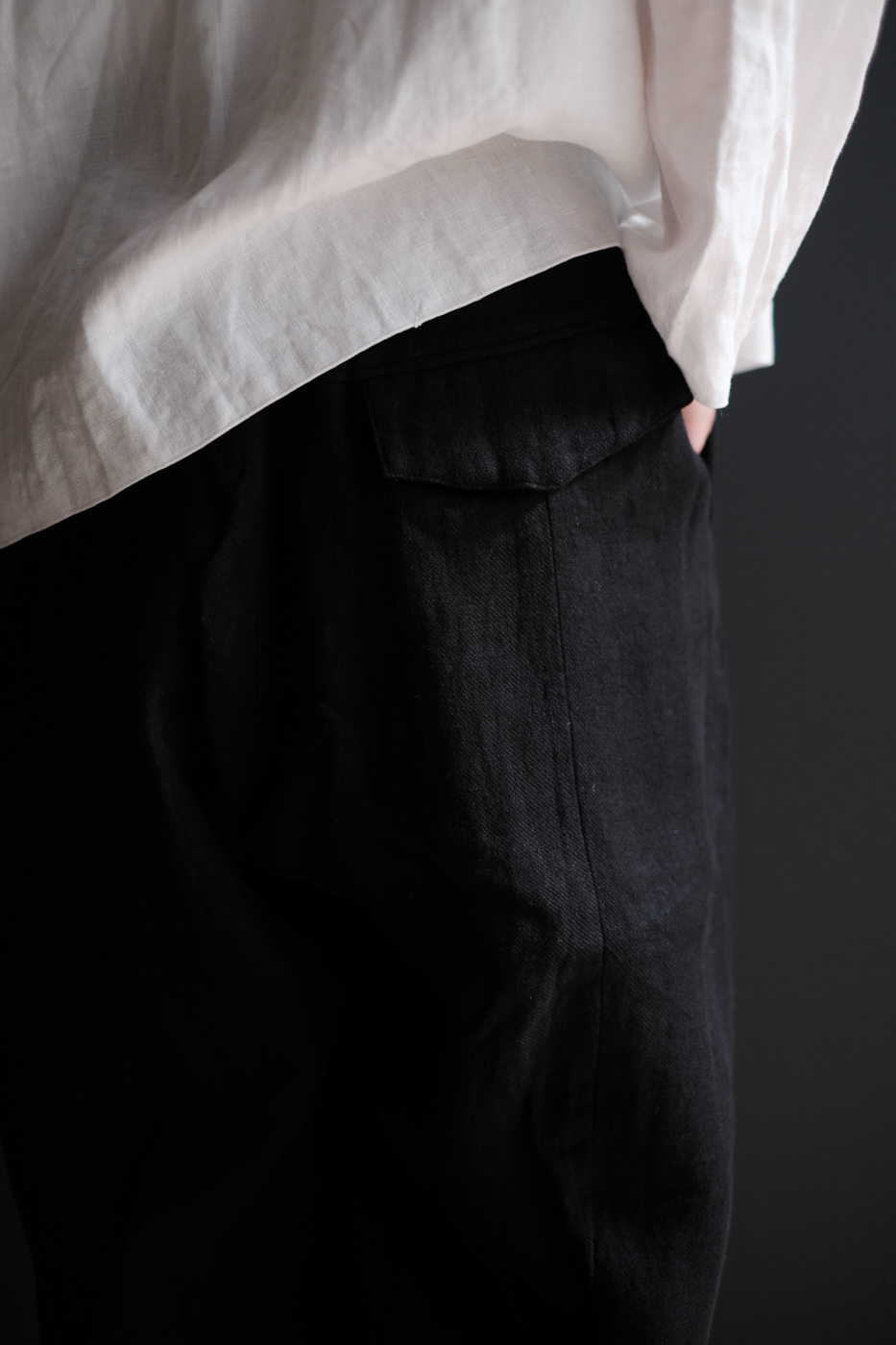 麻素材ならではのシワ感は