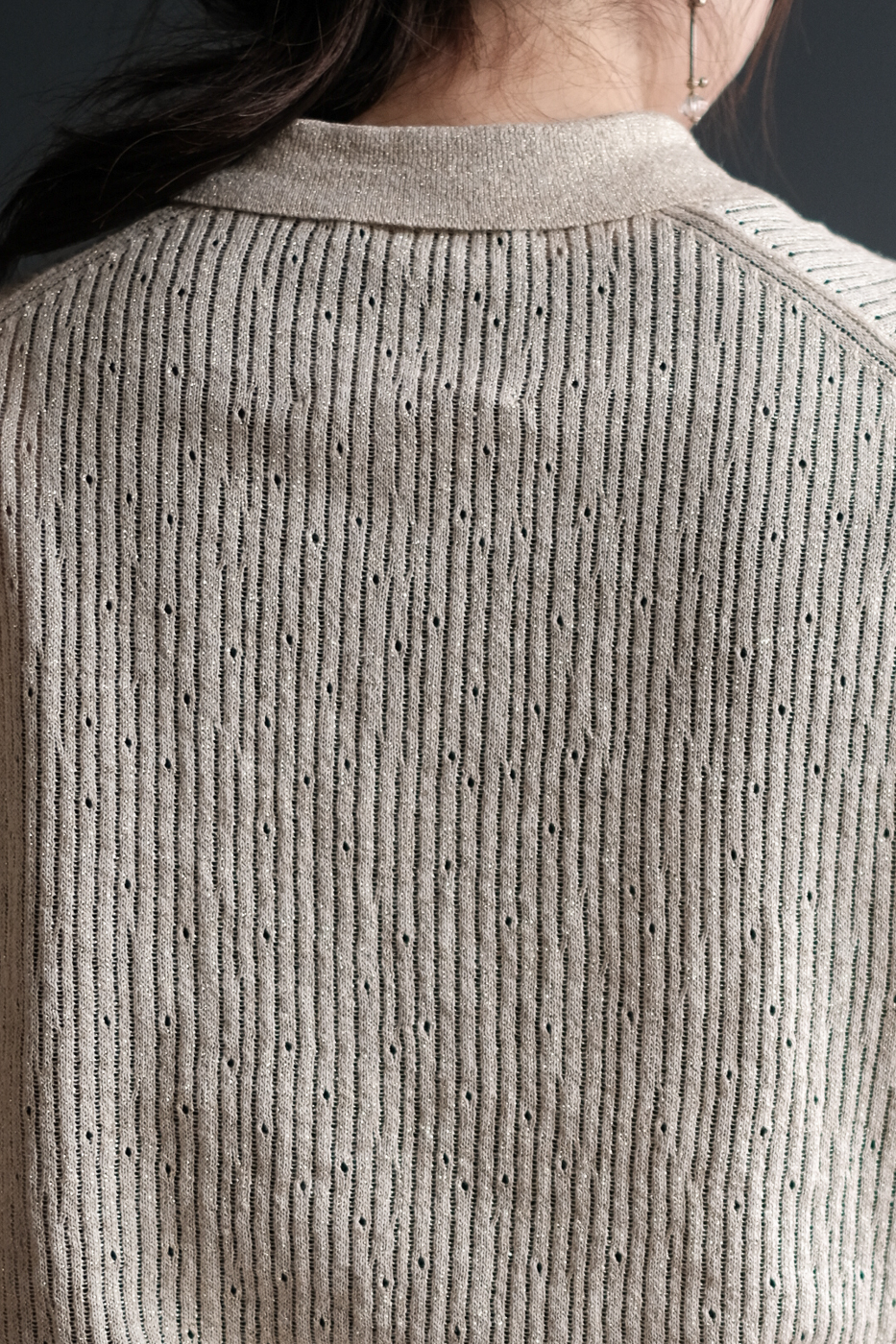 針抜き柄の天竺編みニット。