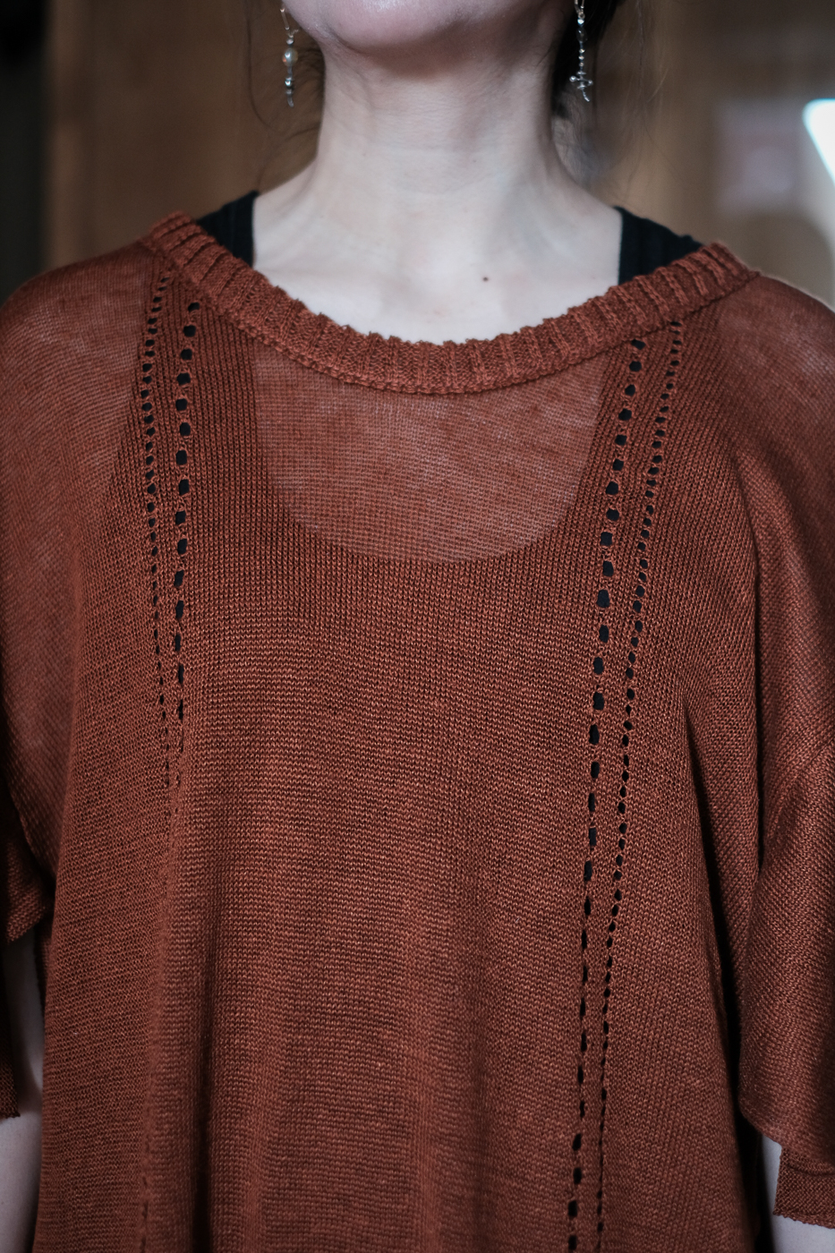 編地にそっとあしらわれたアイレットホールは、