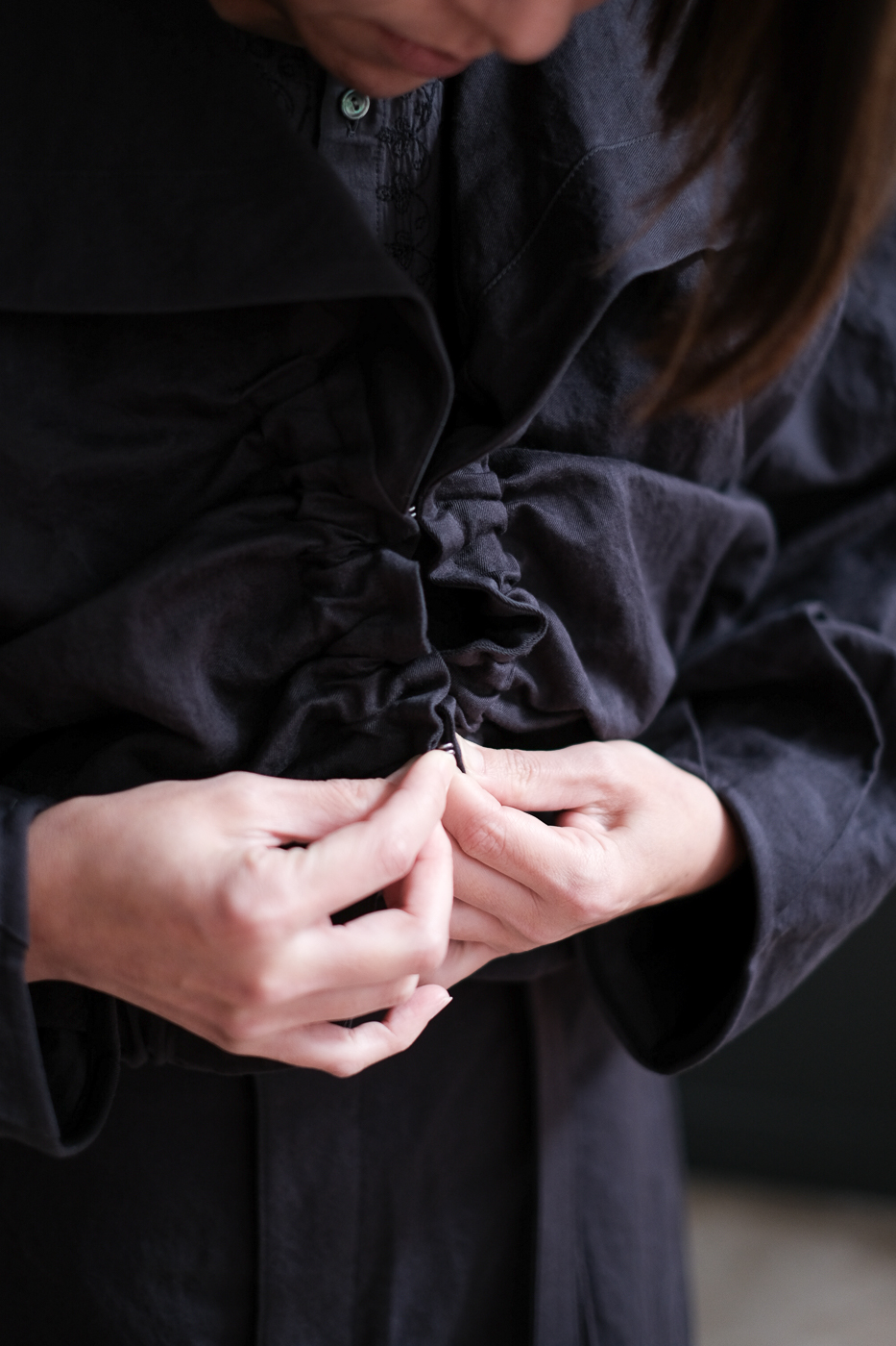 絞ったり、ホックで留めたり、留めなかったり