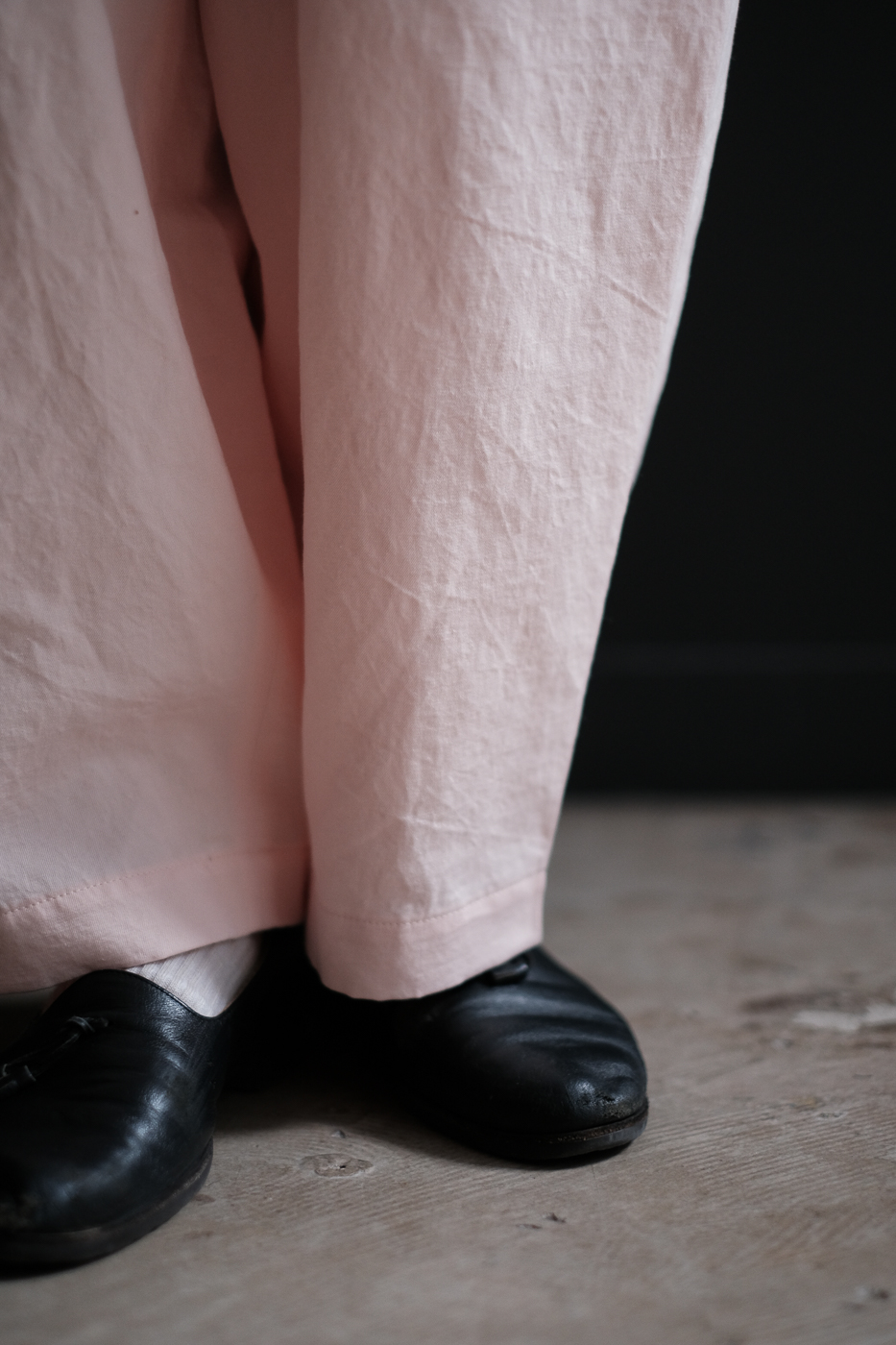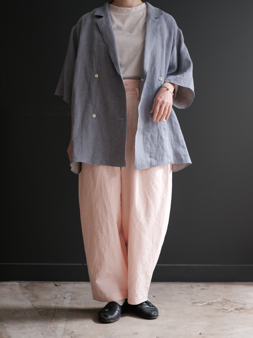 細い超長綿に細番手のリネンを打ち込んだギャバを