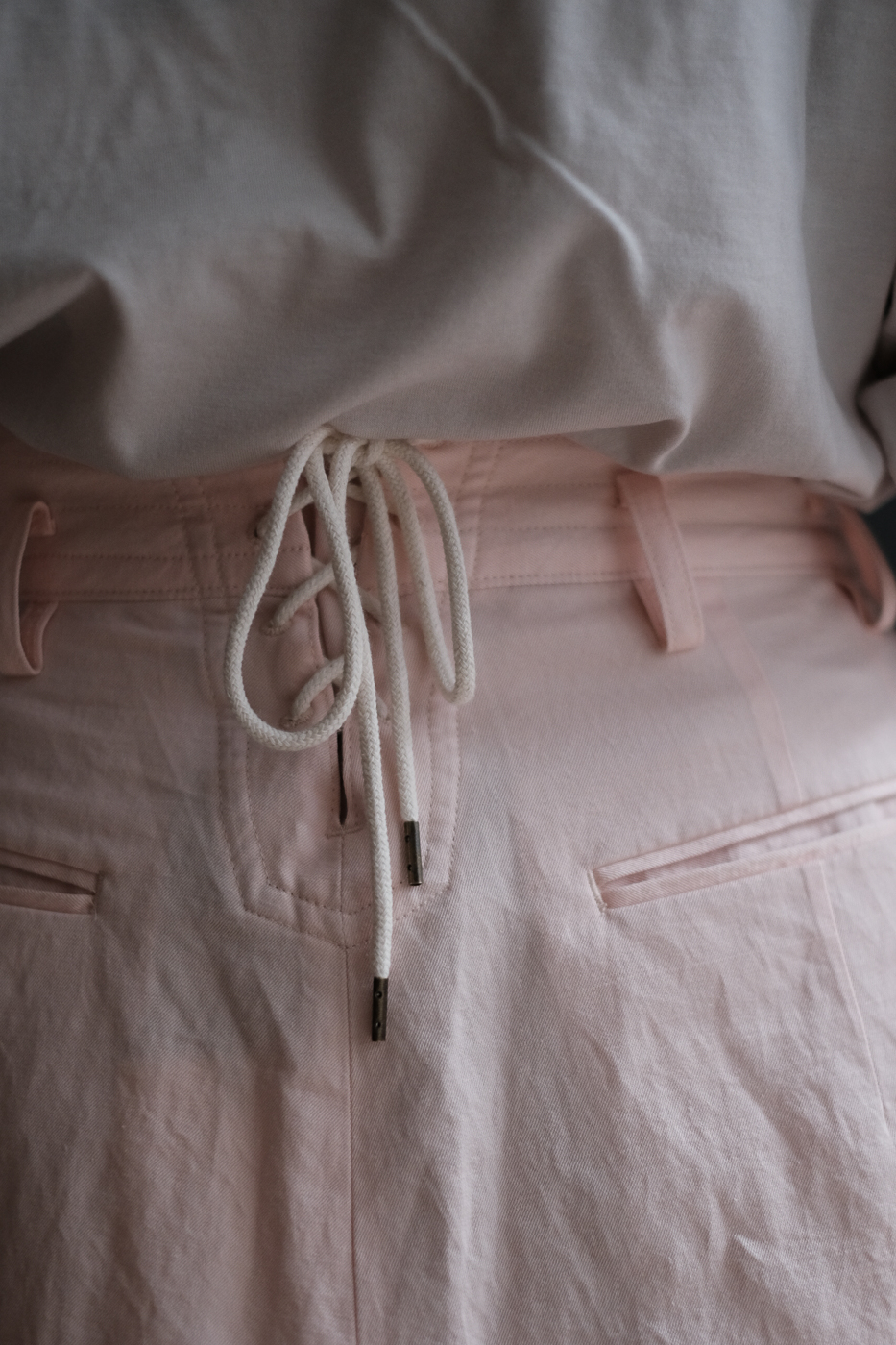 編み上げられた紐のディテール。