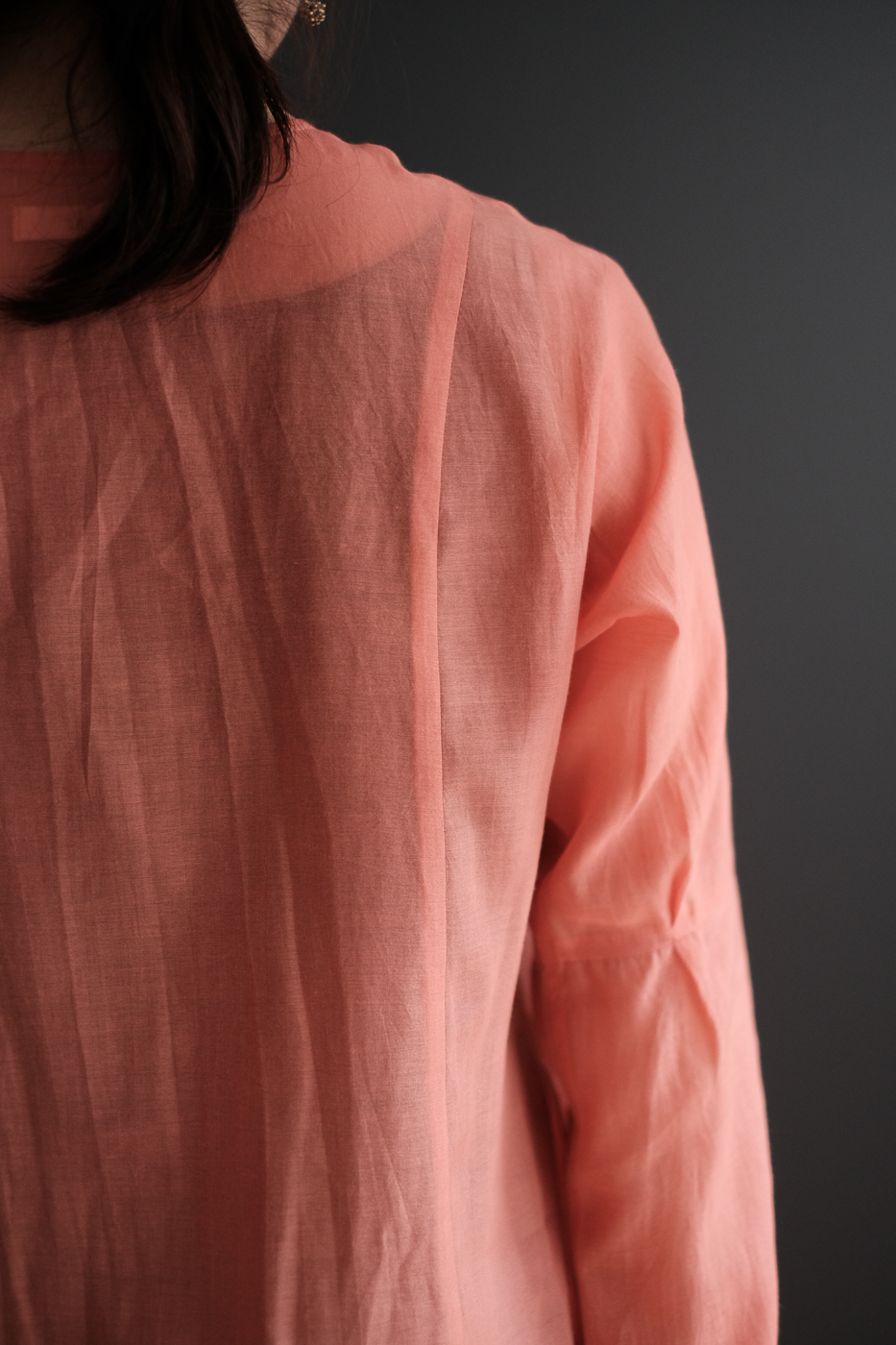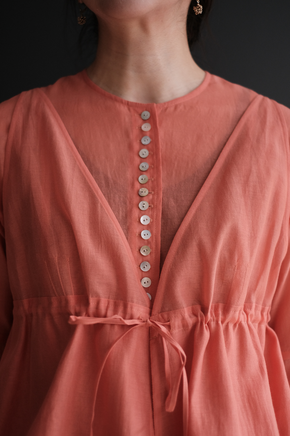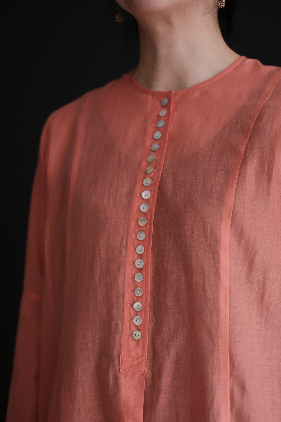 細やかに羅列したボタン、体の線を拾わずも