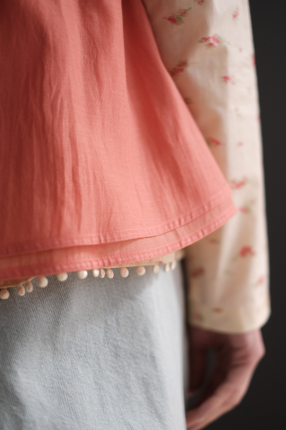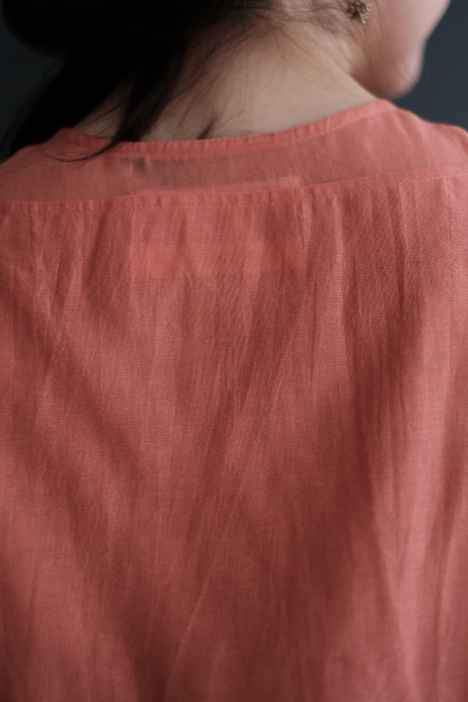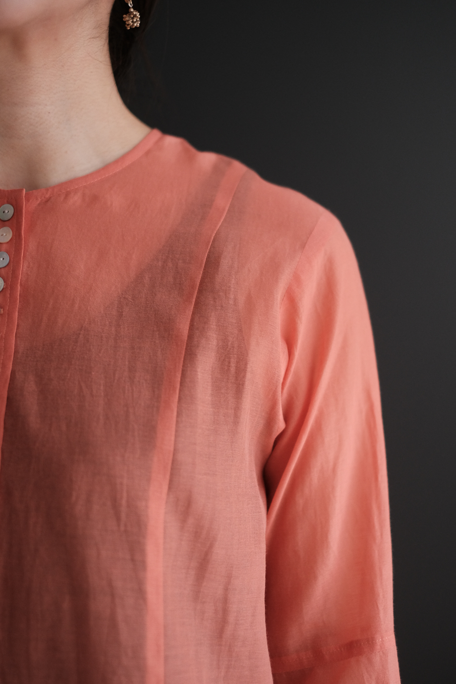 細やかに羅列したボタン、体の線を拾わずも
