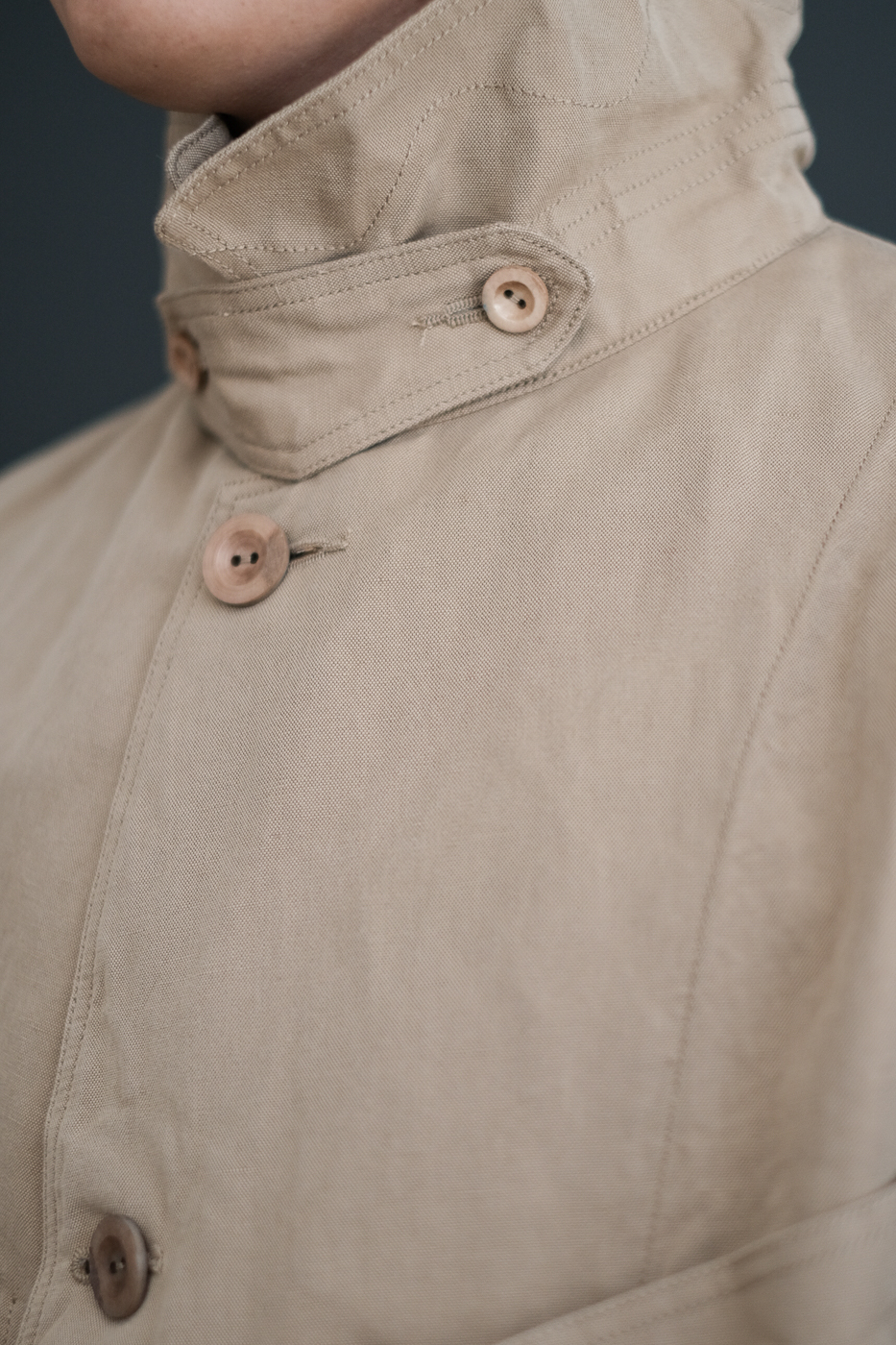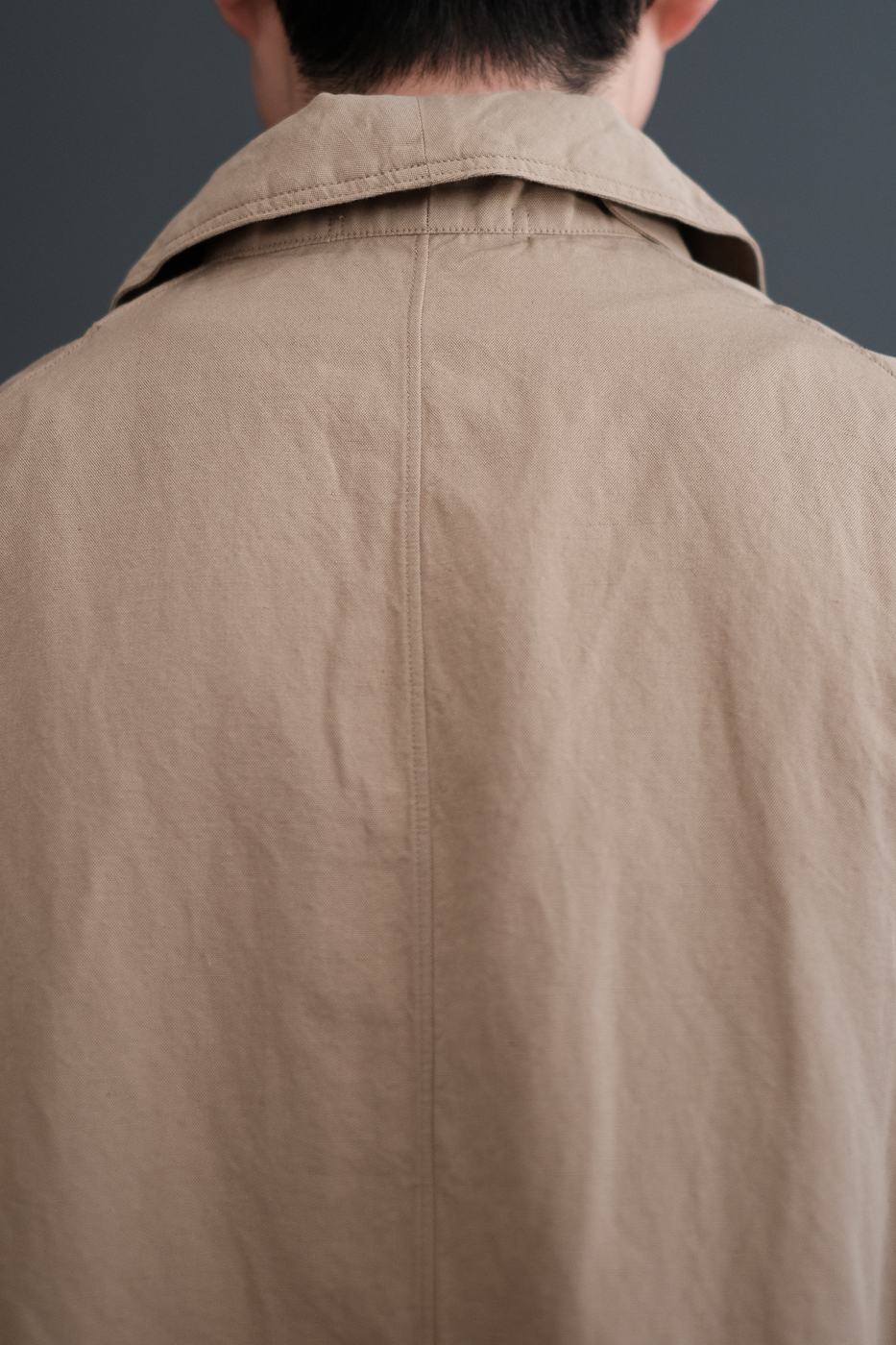 襟元を立てて上まで留めるのもまた端正でさまになり、