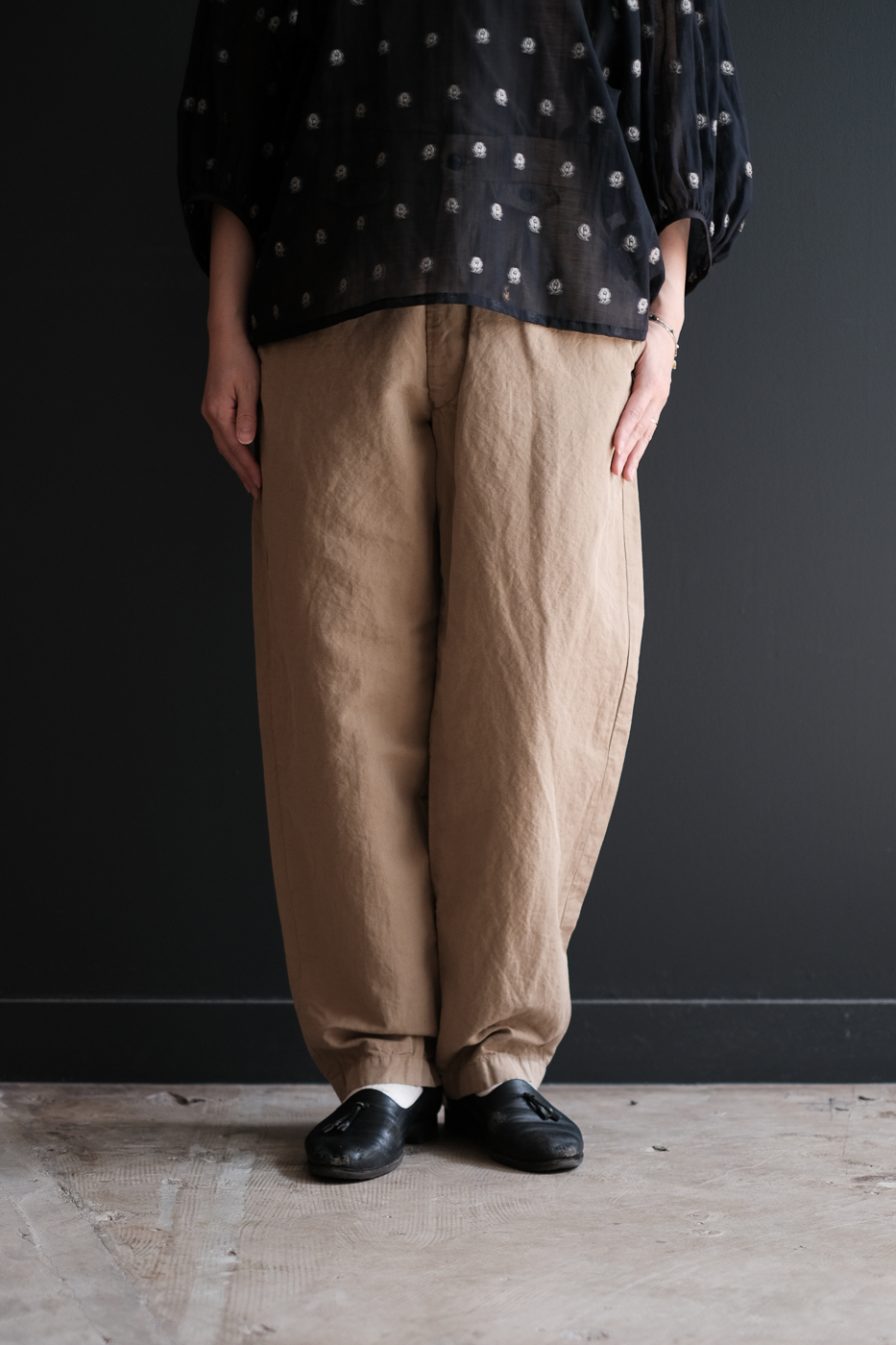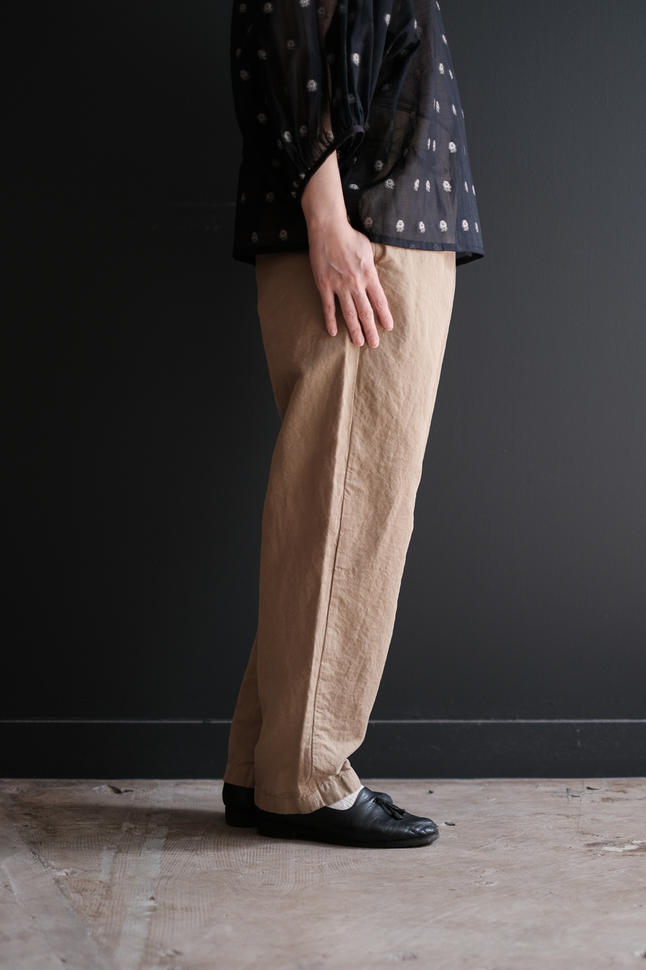 Front tuck trousers (Cotton linen silk OX) col.beige