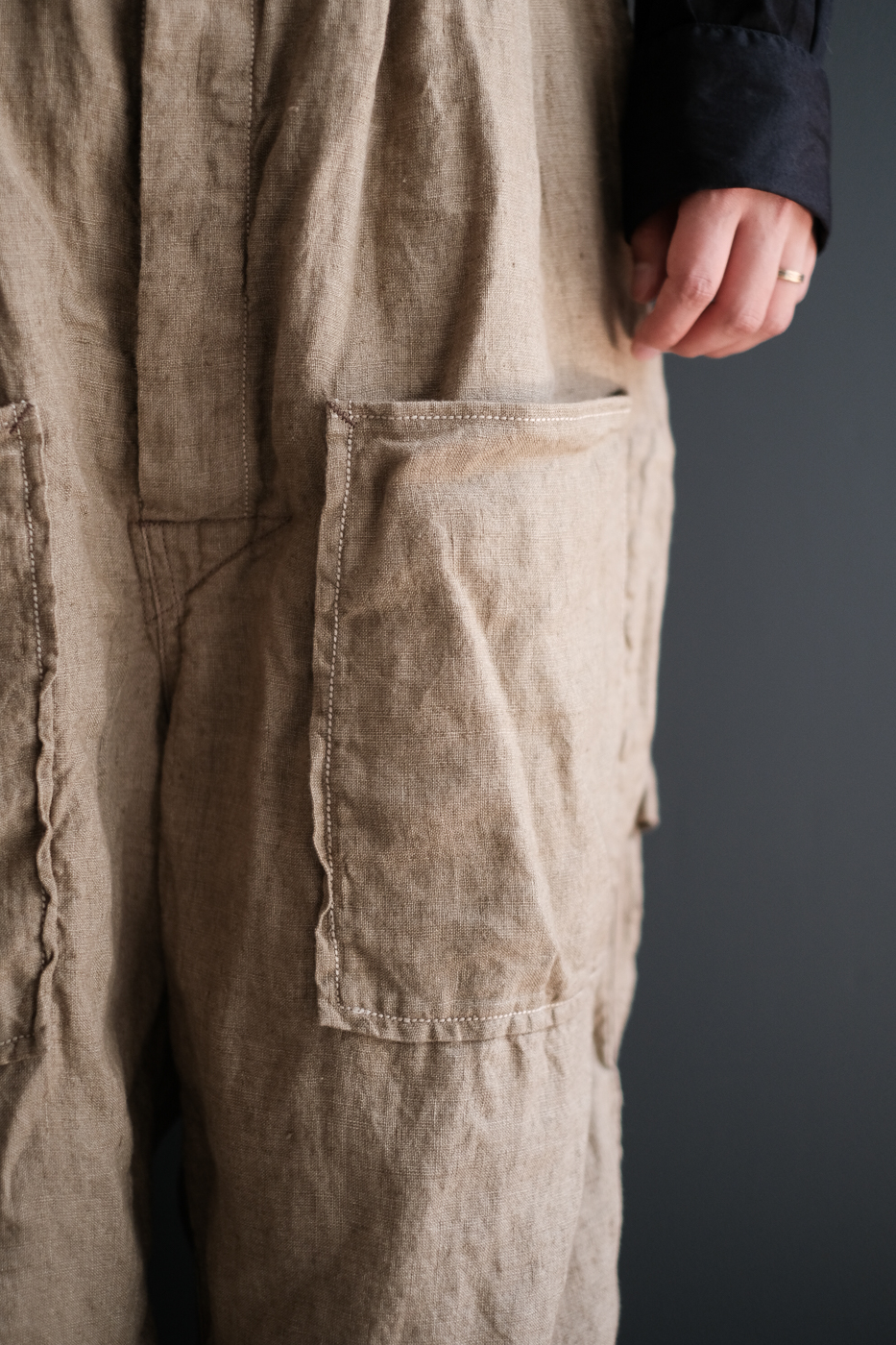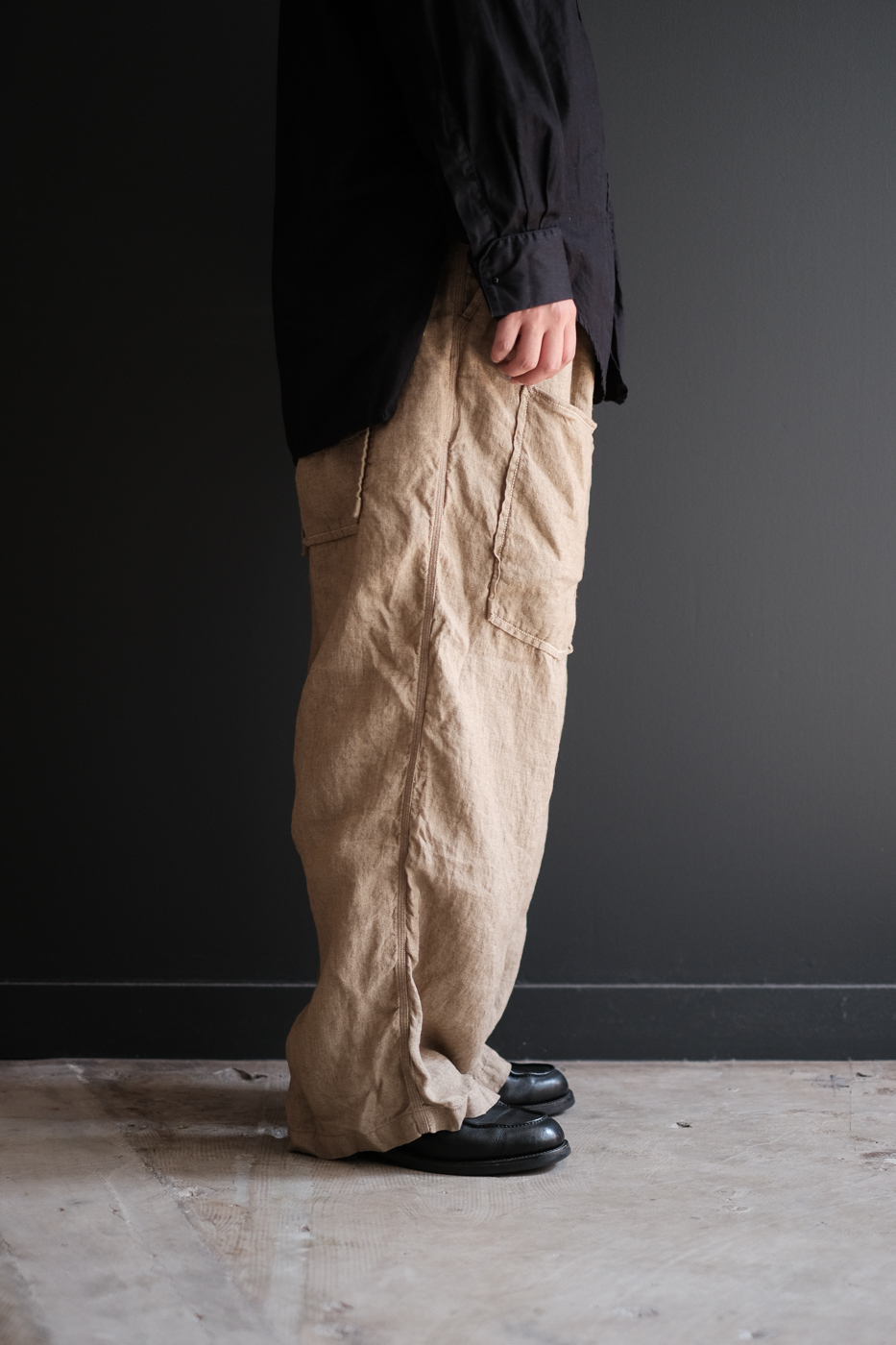 Over pants (Indigo linen washer) col.beige