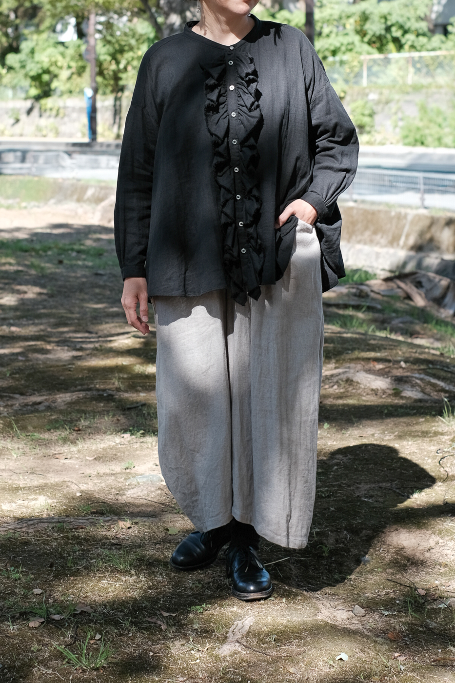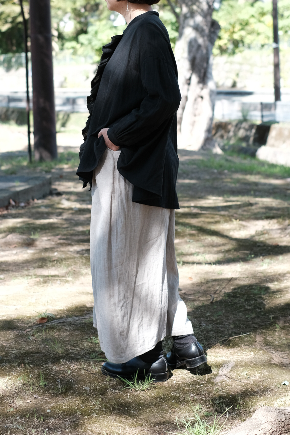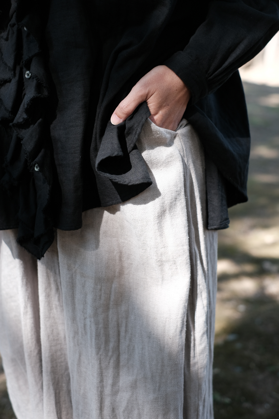 また麻素材ならではのシワ感は