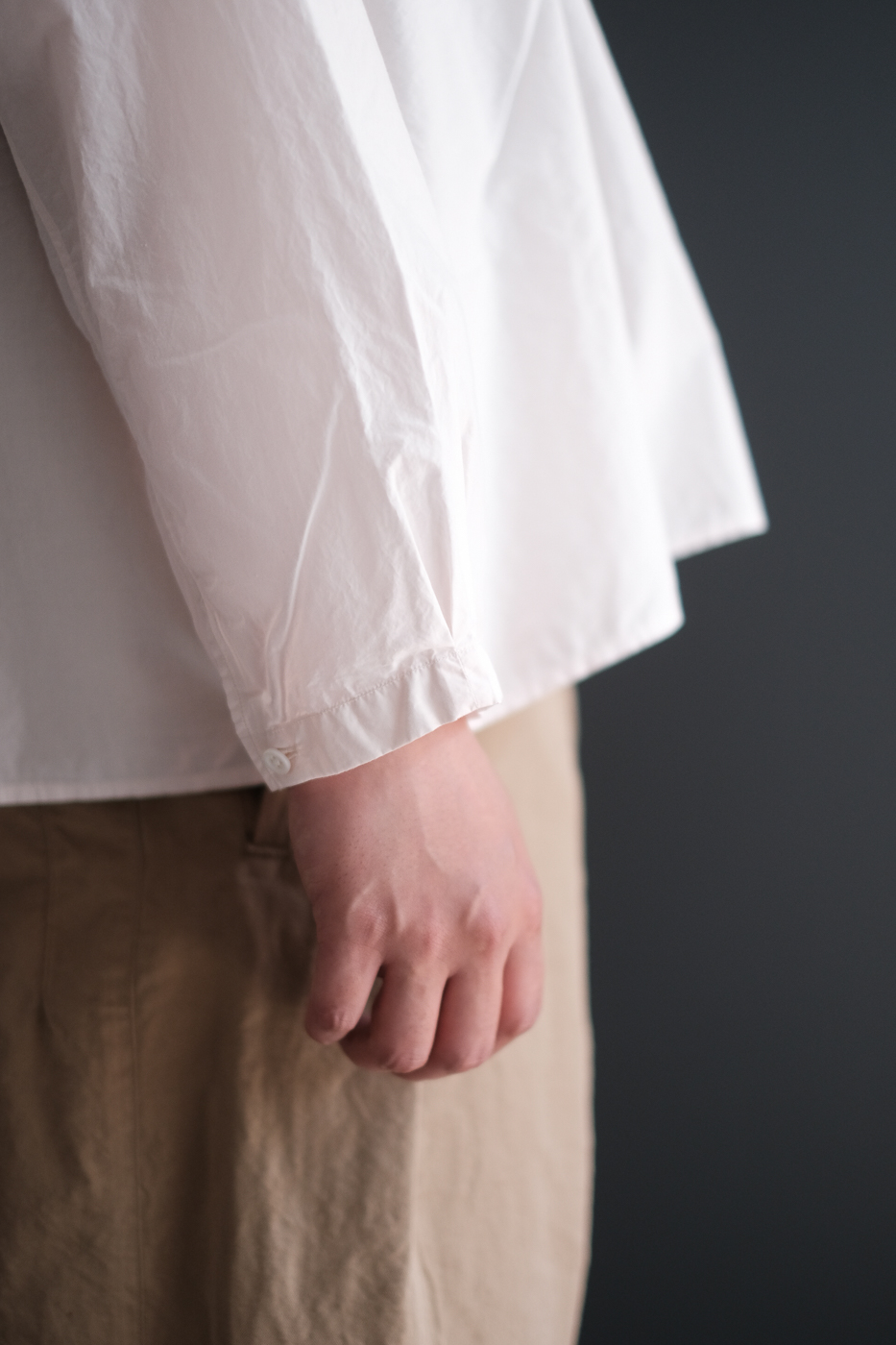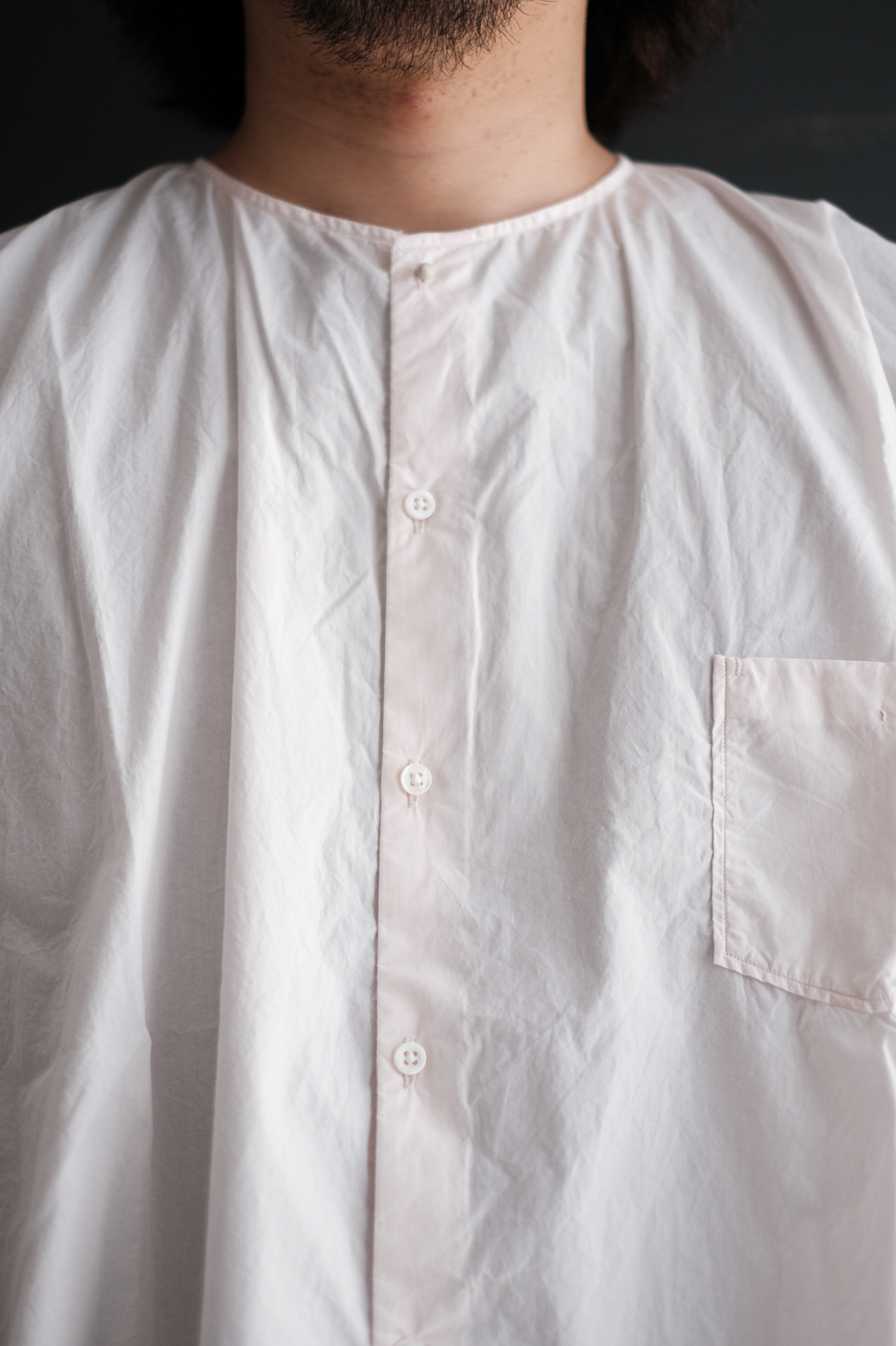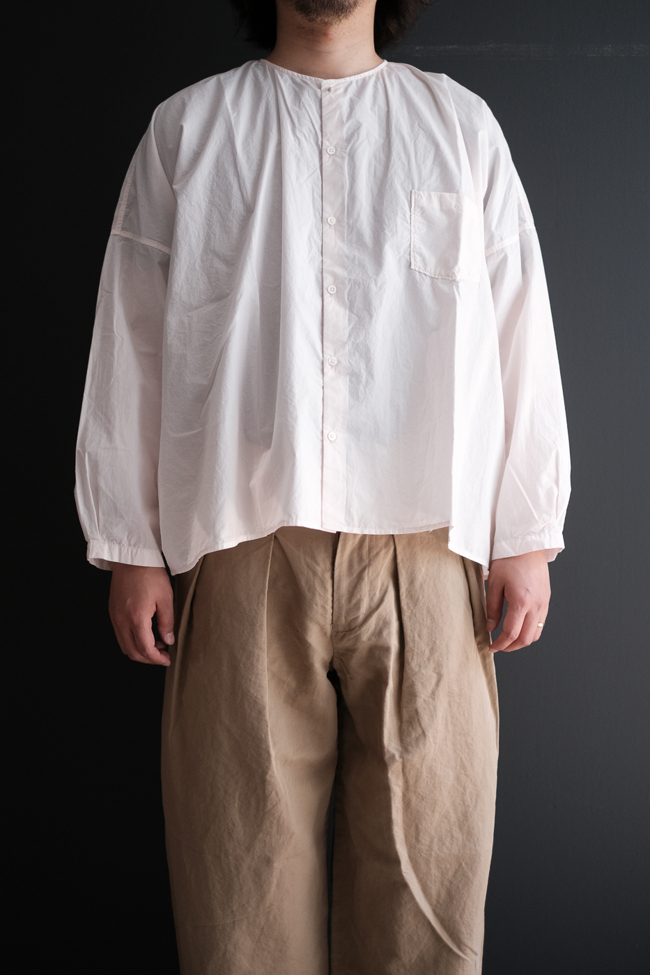 飾り気のないパターンで作られたNo-collar shirt wide。