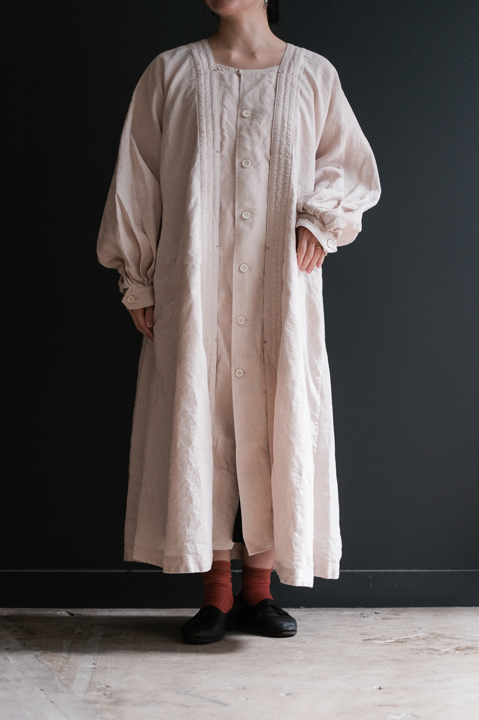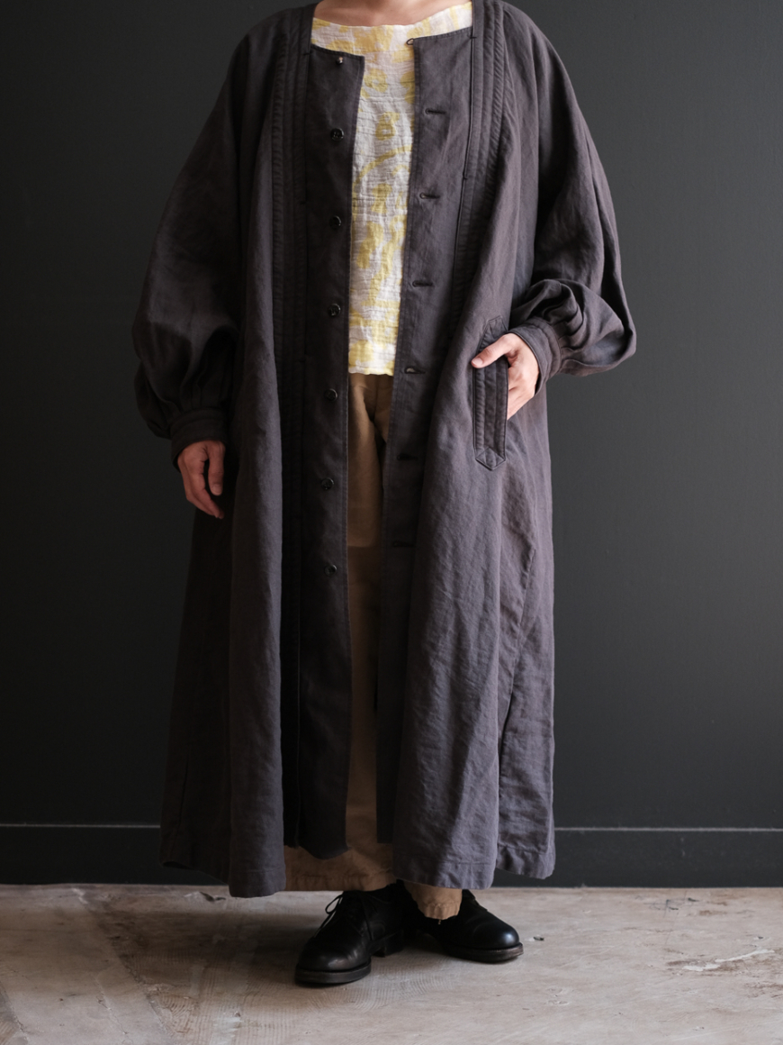 Back gather style coat 2 (High count washi linen) col.charcoal