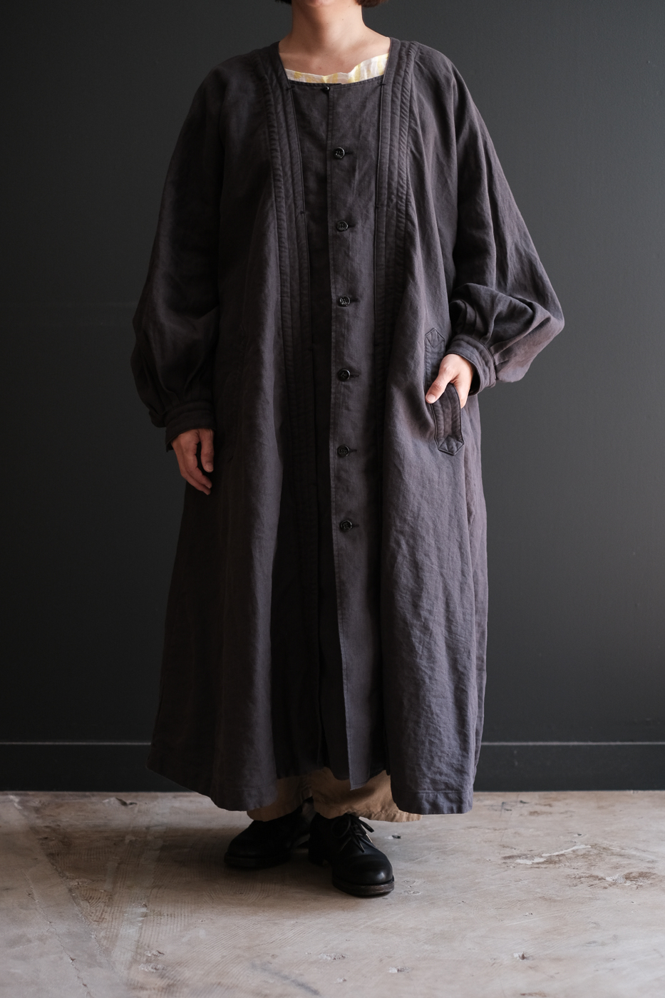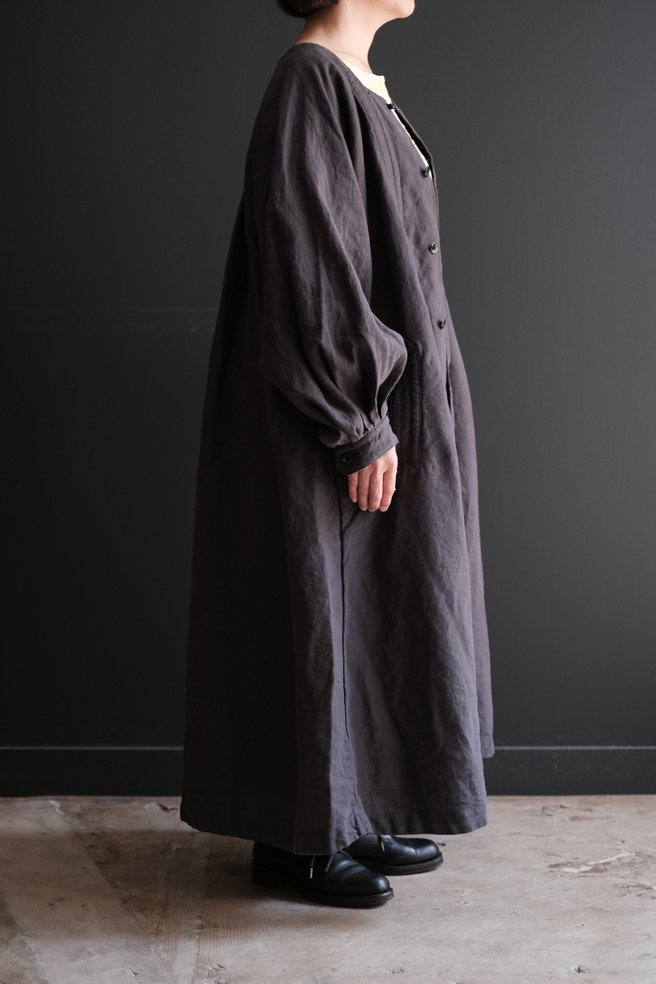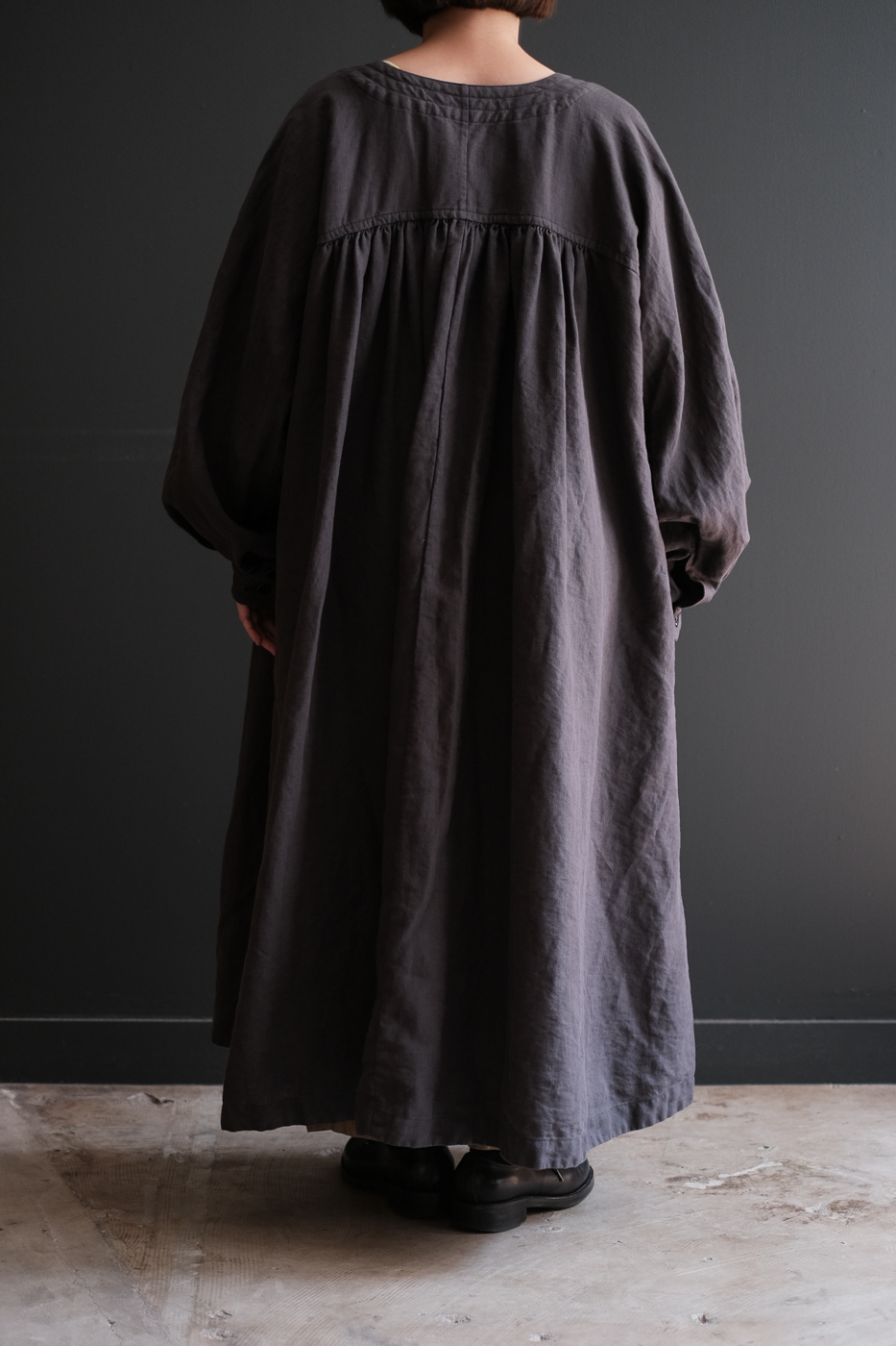 Back gather style coat 2 (High count washi linen) col.charcoal