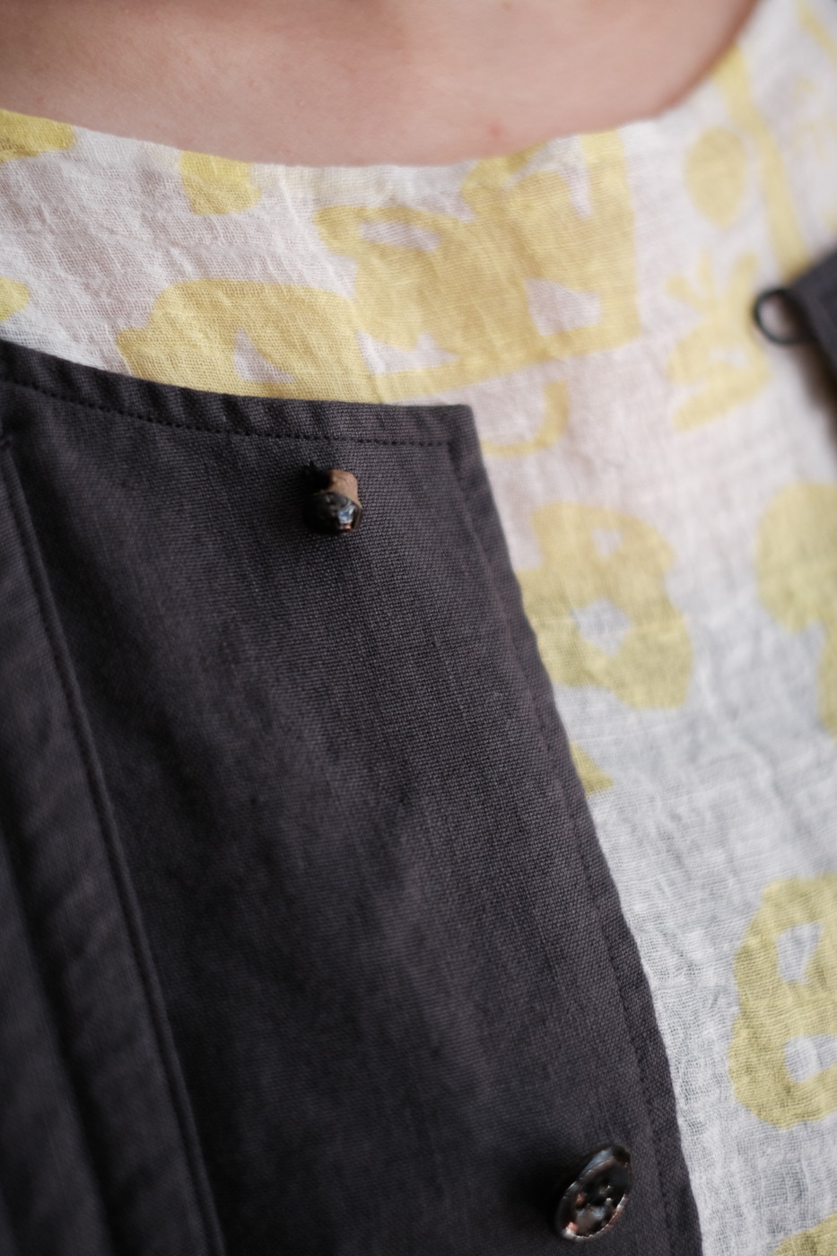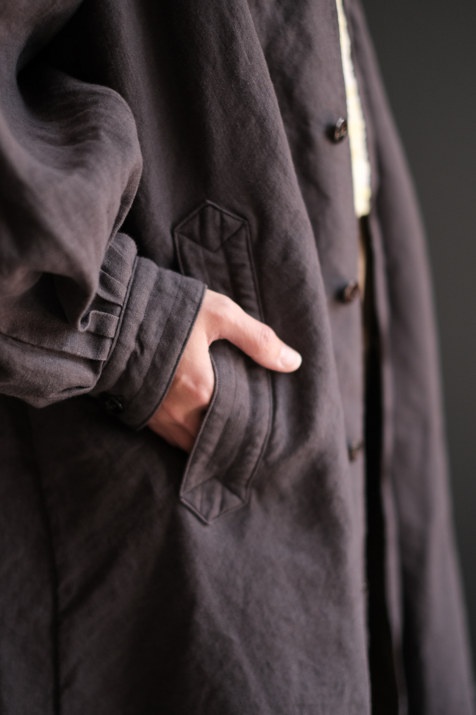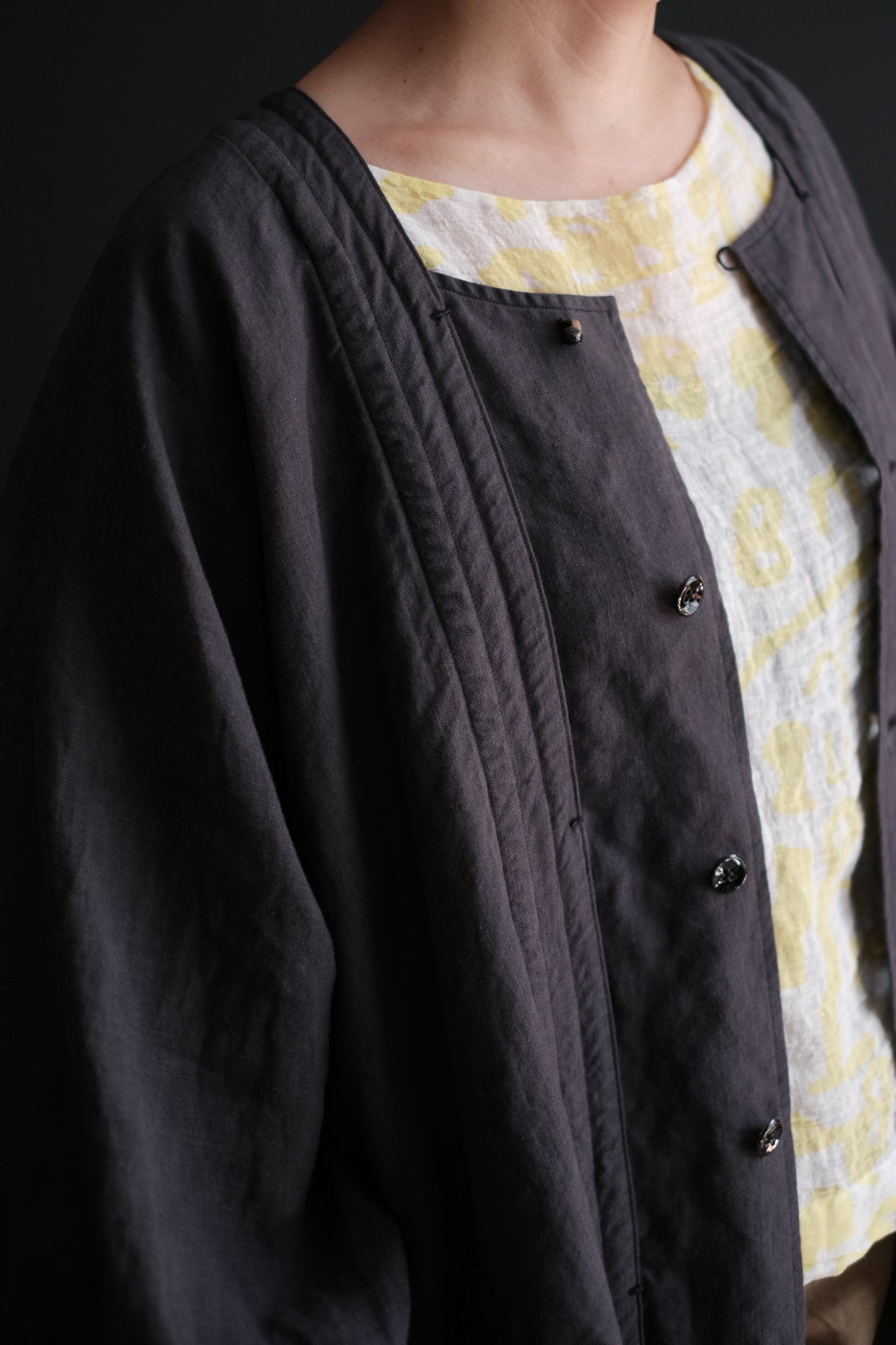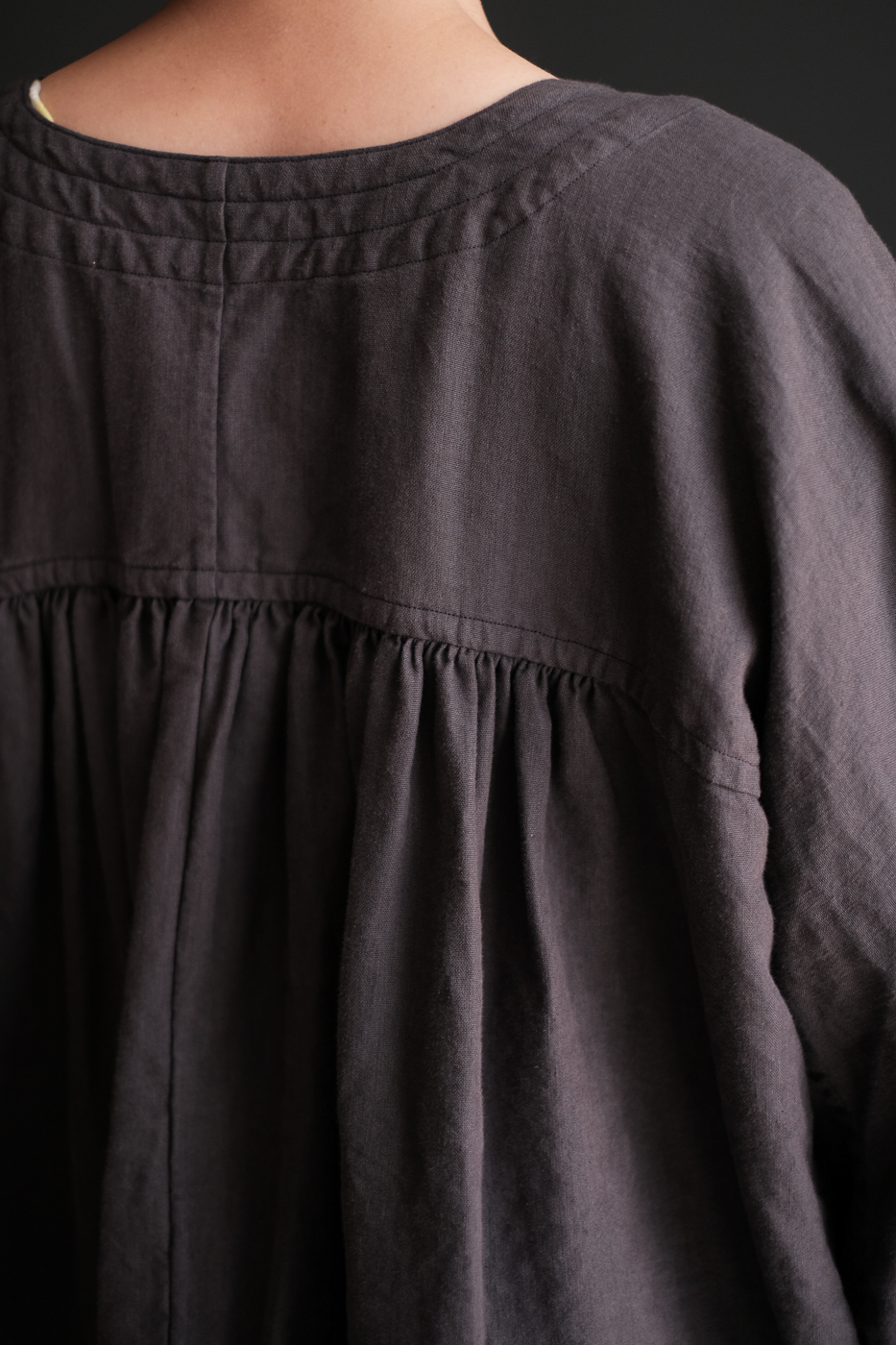 Back gather style coat 2 (High count washi linen) col.charcoal
