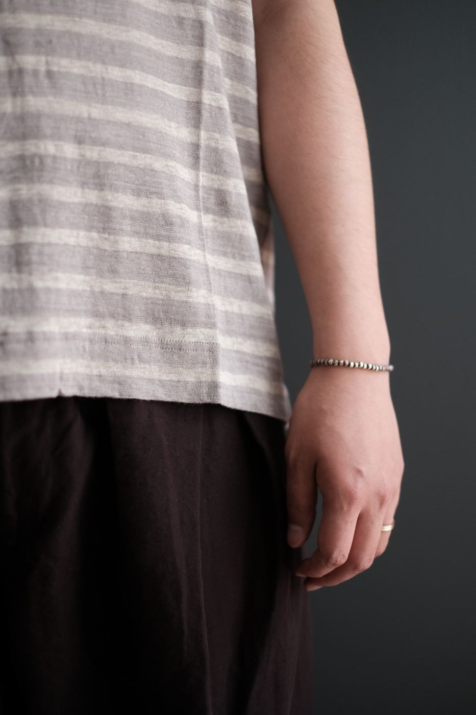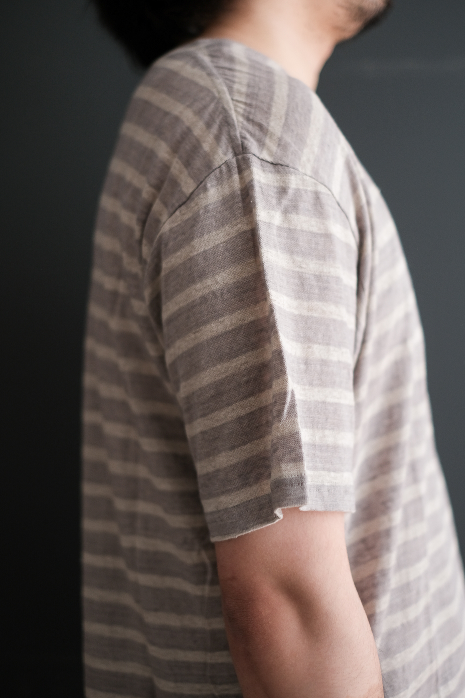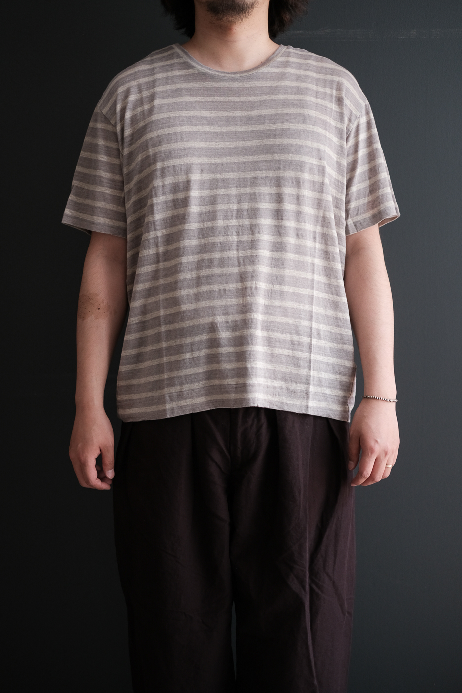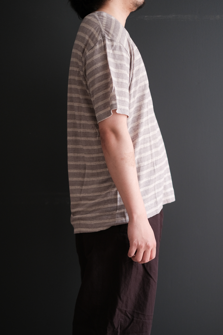 上質な麻素材を使ったクルーネックのTシャツです。
