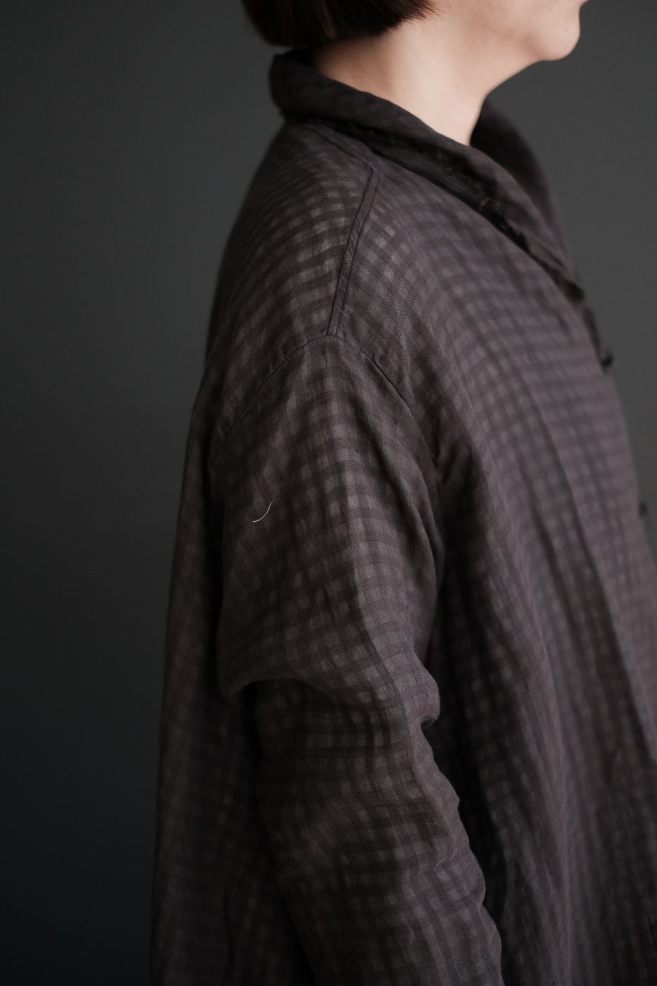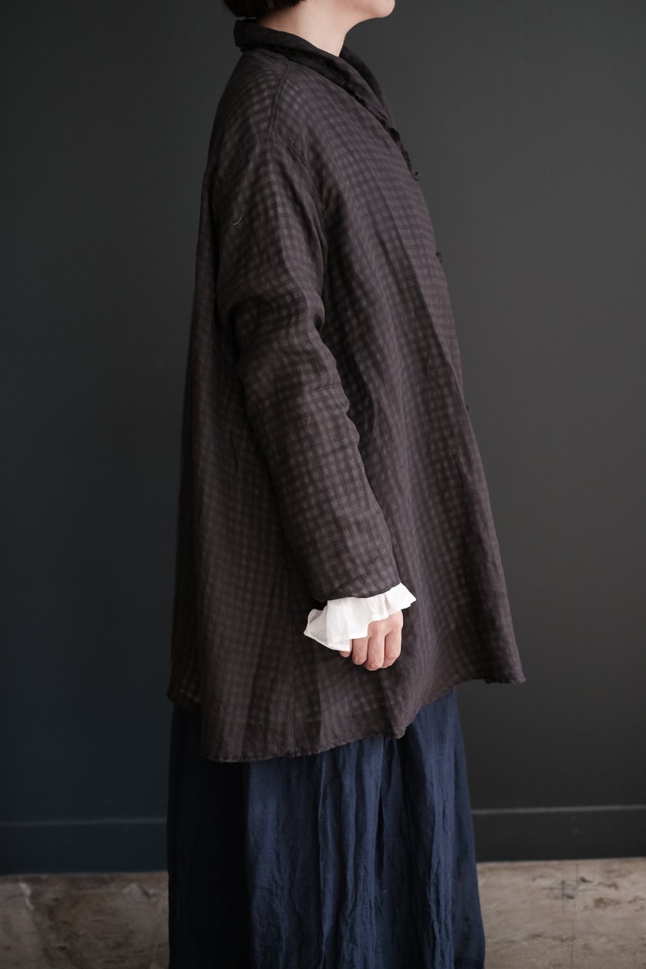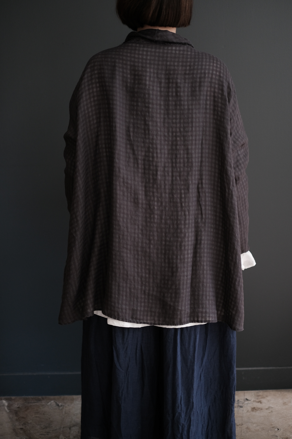 Stole shirt (Linen ramy check) col.charcoal