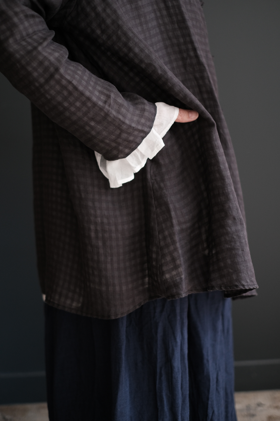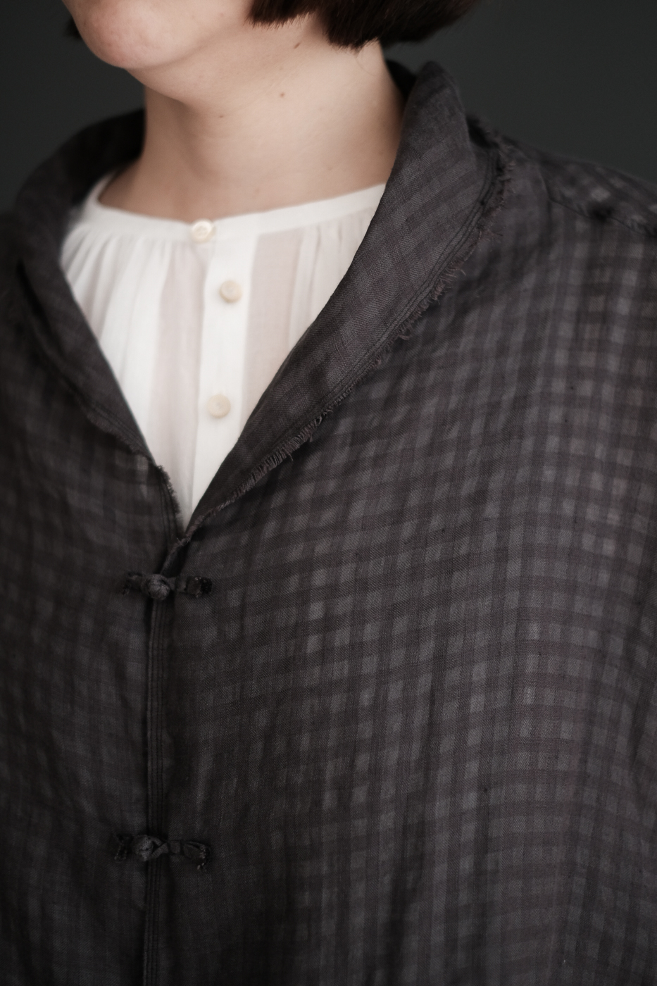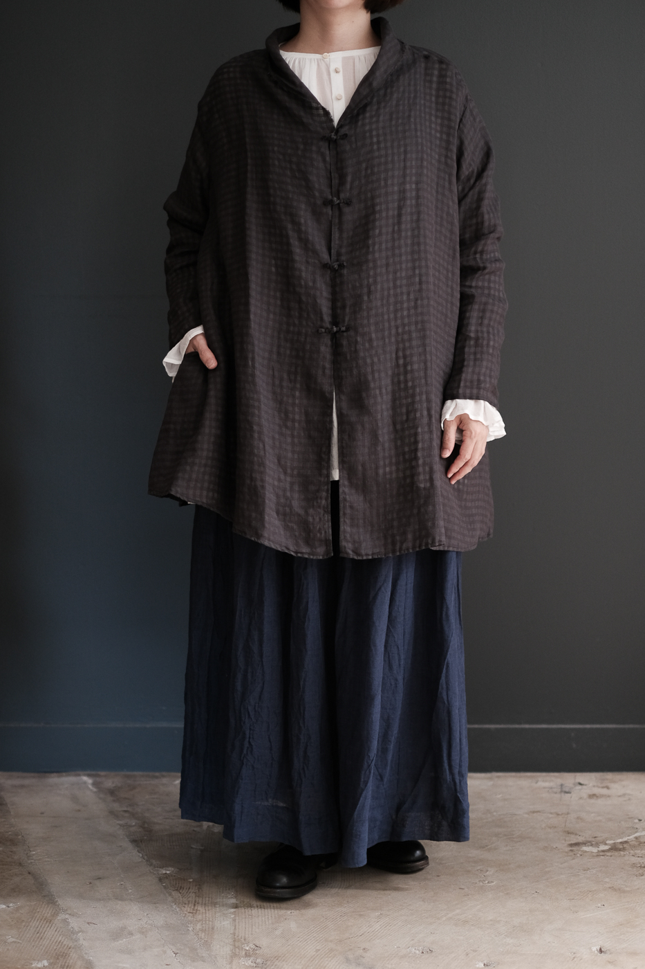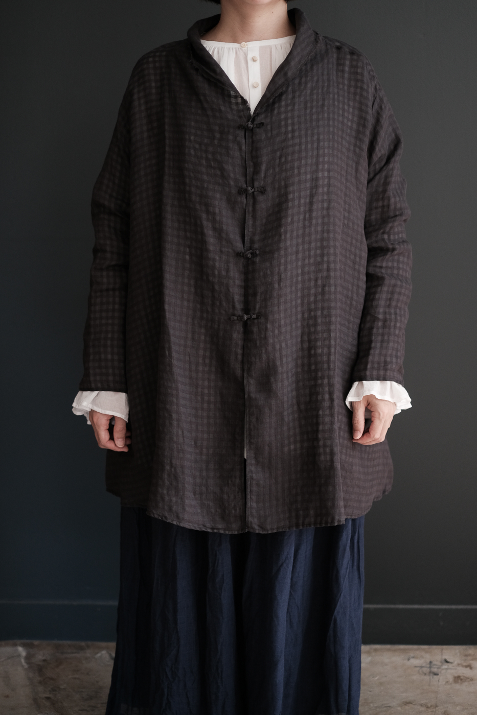 Stole shirt (Linen ramy check) col.charcoal