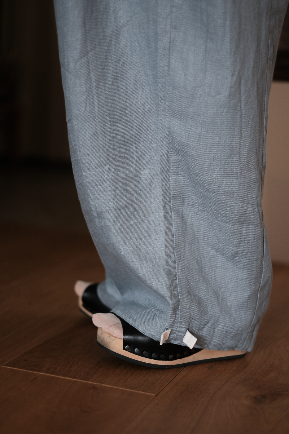 裾を絞る位置によって、バルーンパンツの様な