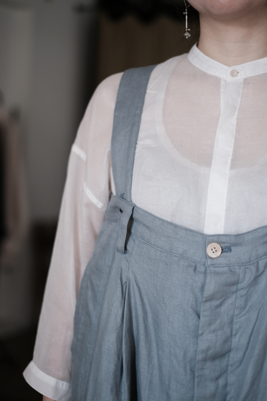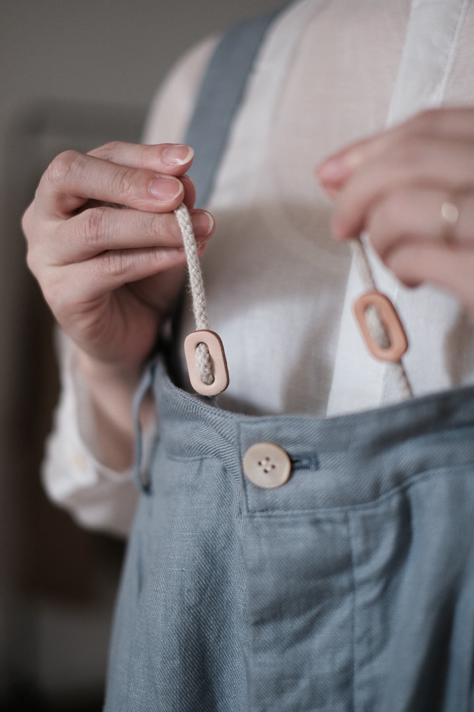 肩紐には前後それぞれ4つずつボタンホールが付いており、