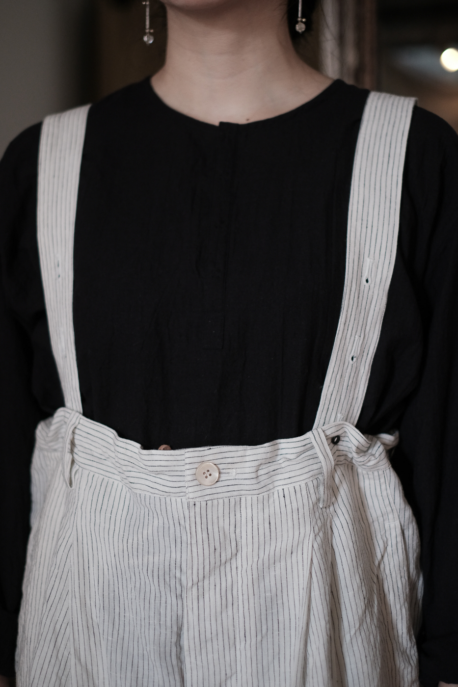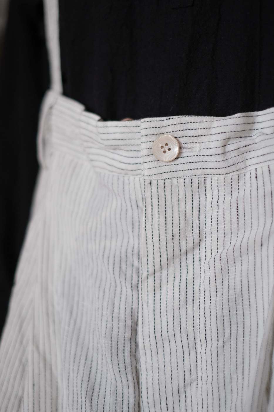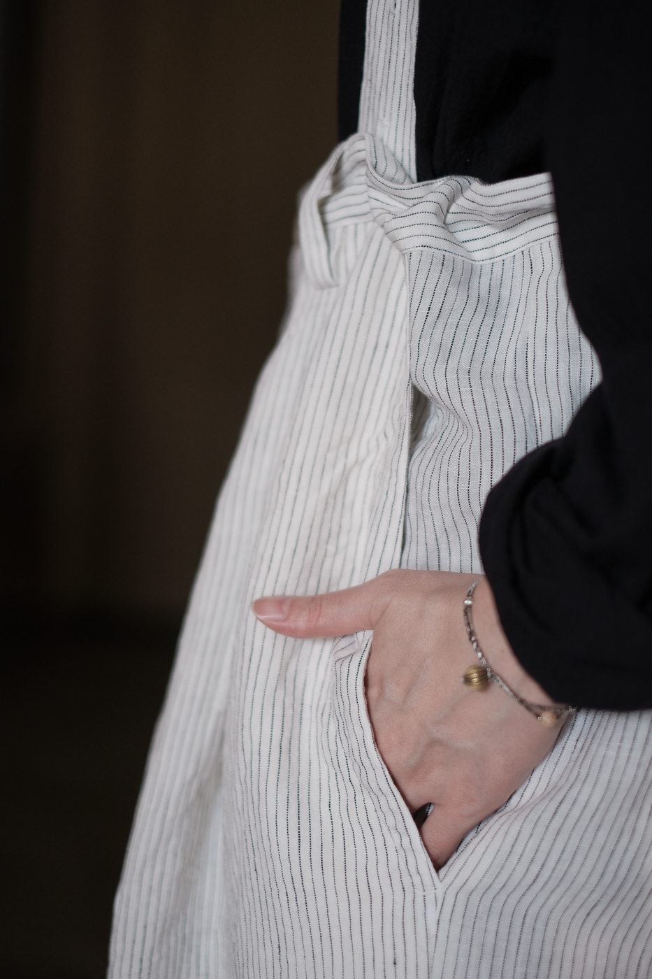 節のある糸を使った特徴的なストライプの麻素材を使用。