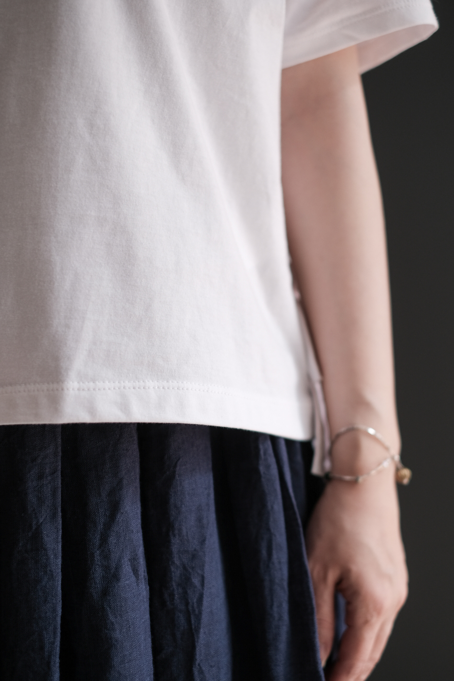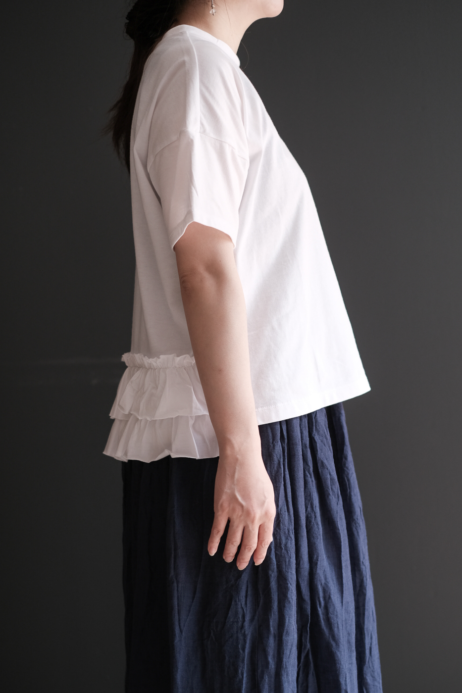 フリルで飾られた後姿が優しく穏やかなカットソー。